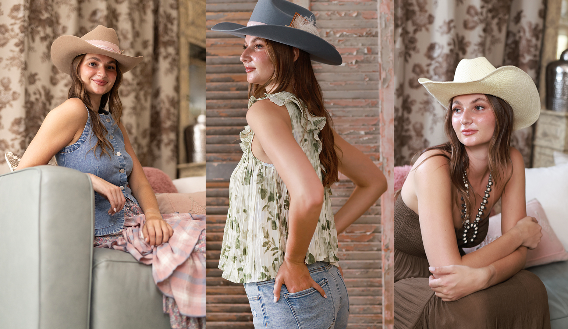 Flea Style sprang to life in 2009 when former lifestyle editor Brittany Cobb launched a holiday makers market in Dallas. In the decade that followed, her vision blossomed into brick-and-mortar boutiques celebrating Western-boho style, handmade goods, and vintage finds. In early 2020, she unveiled The Original Hat Bar, where guests customize statement hats on the spot. Today, Flea Style is a special mix of hat parties, cafes, hotel shops, and online drops. Every moment is driven by Brittany’s passionate creativity, love of storytelling, and nostalgia for her California roots.