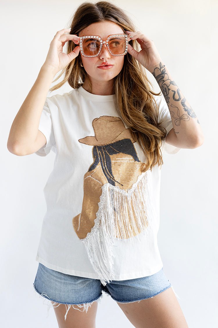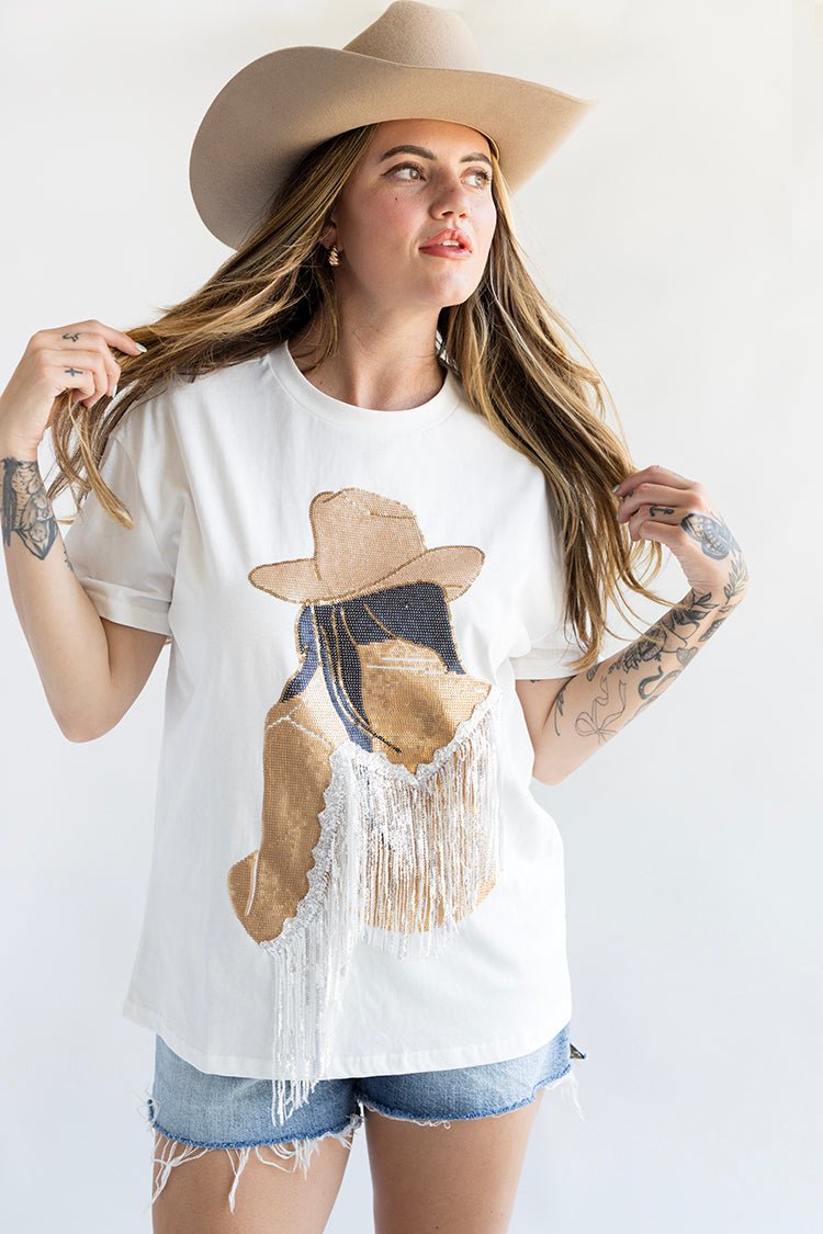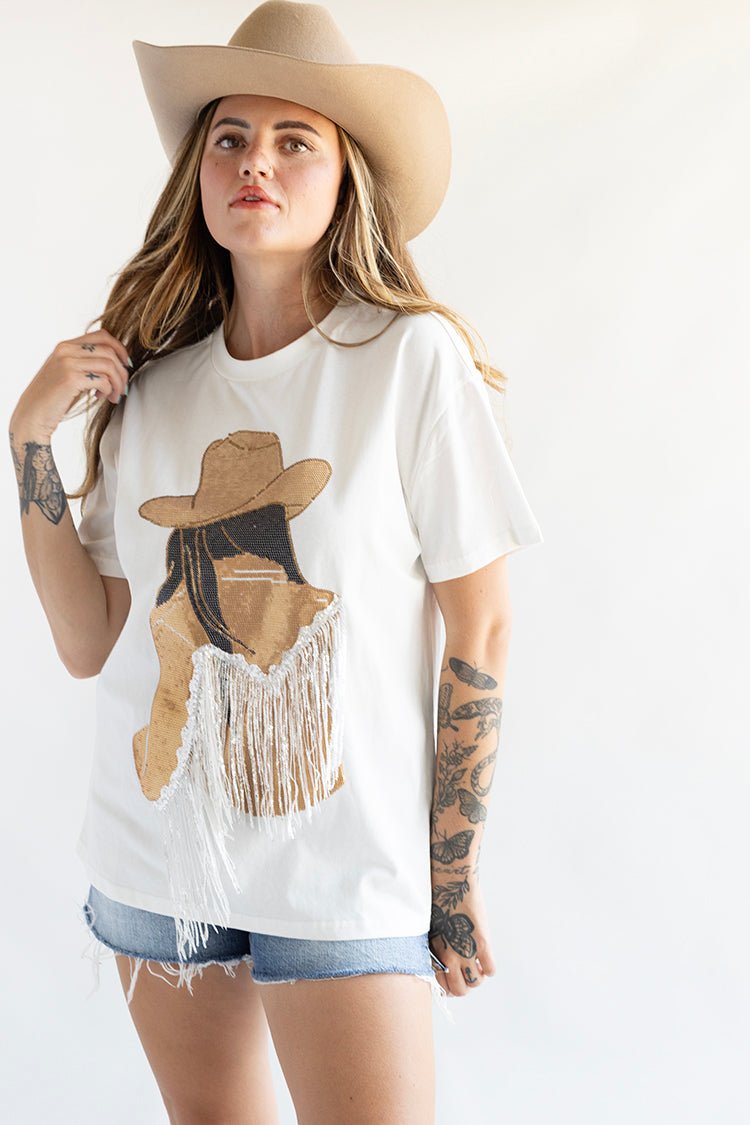 Cowgirl with Brunette Hair Bling Top - Flea Style