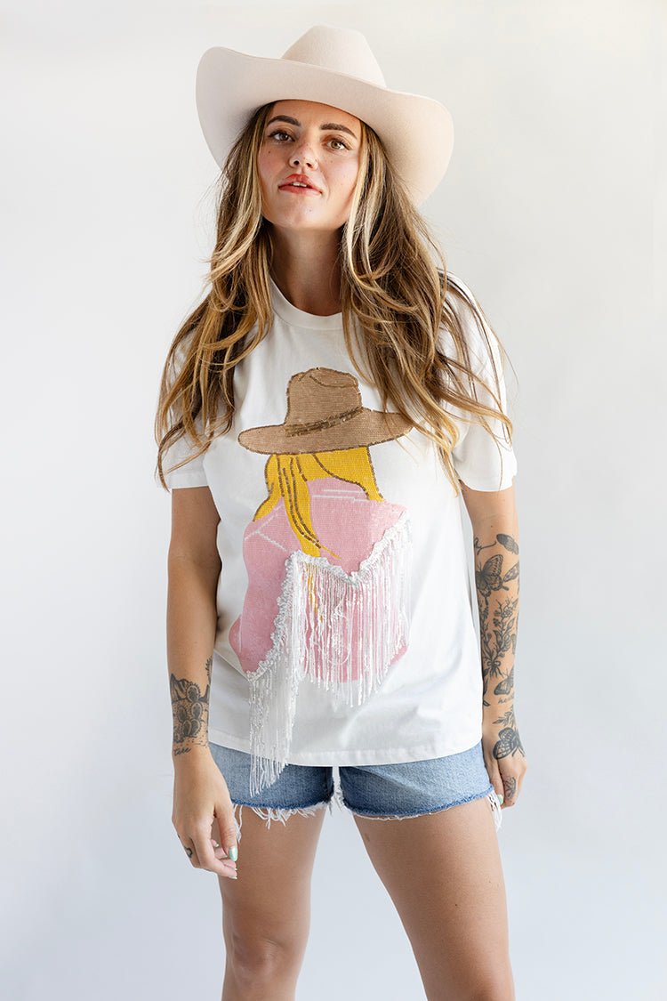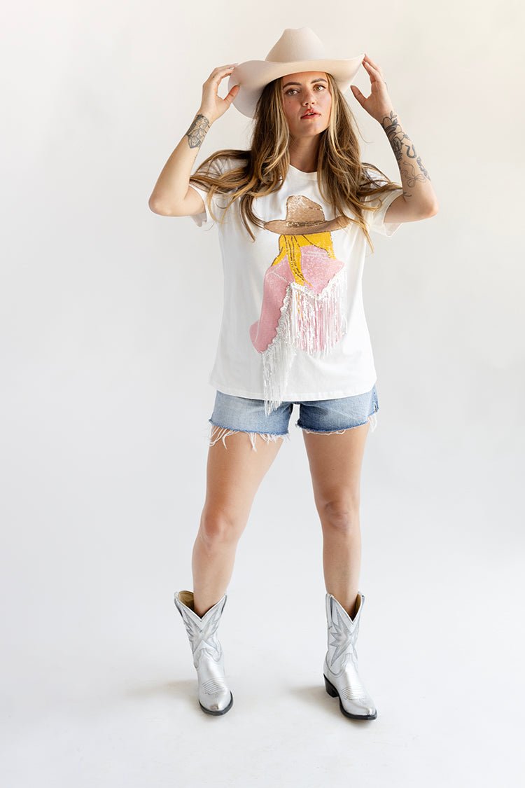 Cowgirl with Blonde Hair Bling Top