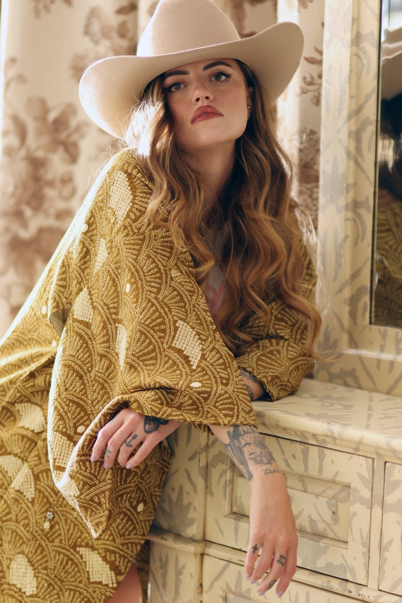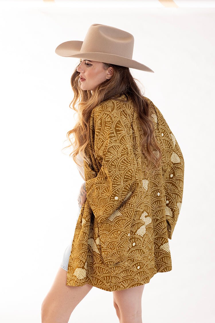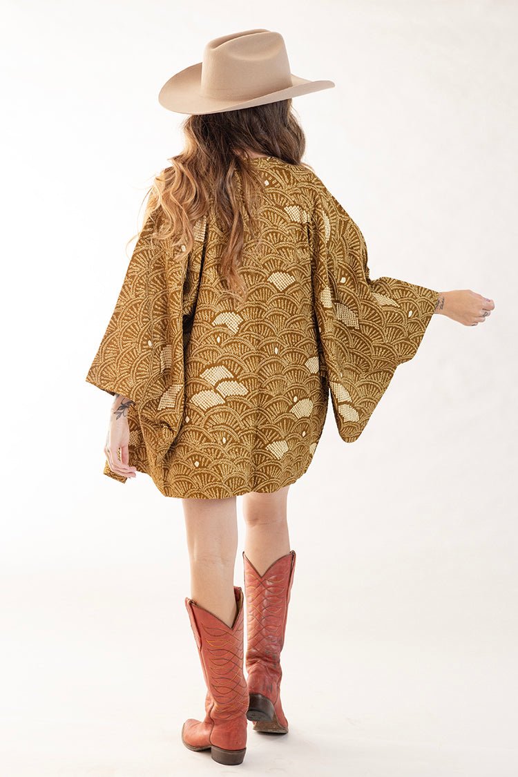 We sourced this vintage Michiyuki jacket in California, and it’s a true treasure. Known for its square collar, flattering three-quarter length and kimono-style sleeves, this traditional Japanese piece is versatile enough to wear buttoned up as a dress or open over a tee and jeans as a one-of-a-kind layer. Exclusive to Flea Style and available online only, it brings timeless craftsmanship and unique style to your wardrobe.