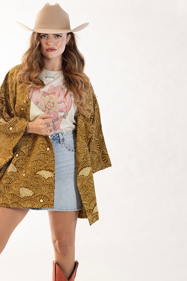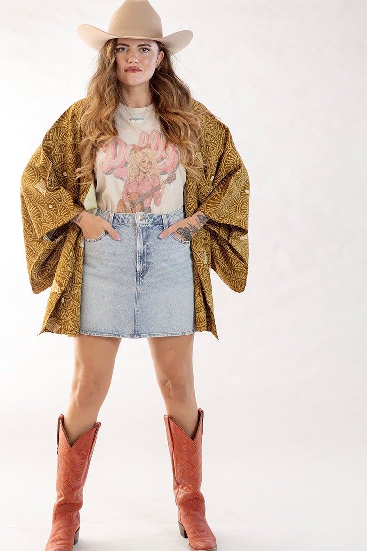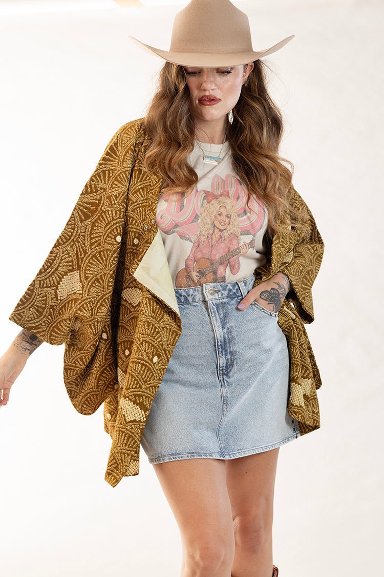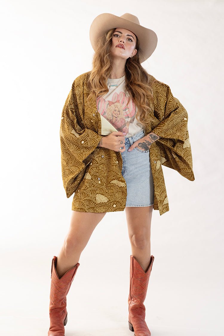 We sourced this vintage Michiyuki jacket in California, and it’s a true treasure. Known for its square collar, flattering three-quarter length and kimono-style sleeves, this traditional Japanese piece is versatile enough to wear buttoned up as a dress or open over a tee and jeans as a one-of-a-kind layer. Exclusive to Flea Style and available online only, it brings timeless craftsmanship and unique style to your wardrobe.