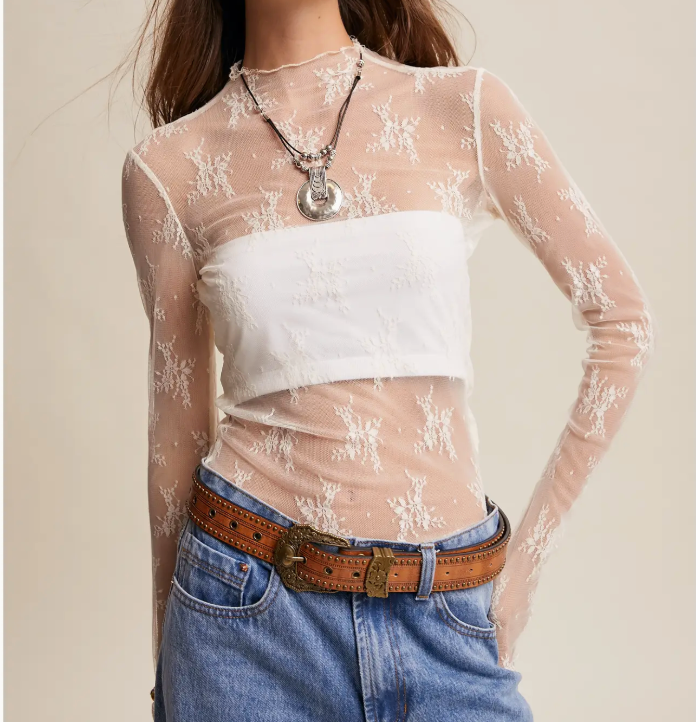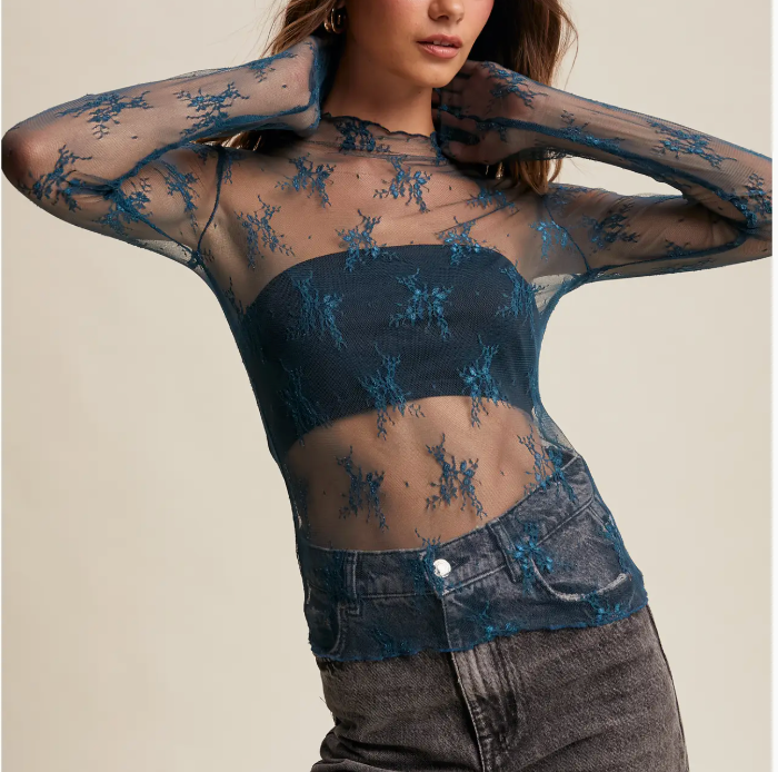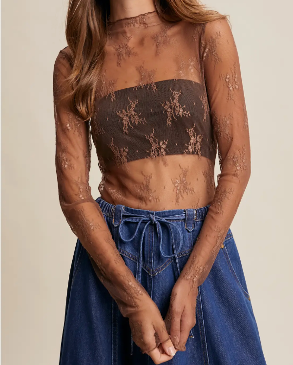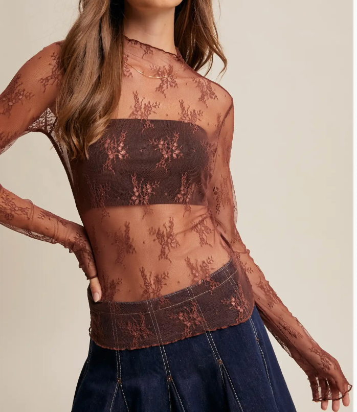 A sophisticated piece that combines delicate lace with a modern silhouette. Featuring a high mock neck and intricate lace detailing throughout, this top exudes a timeless charm that pairs beautifully with skirts, jeans, or under an oversized top layer. The semi-sheer lace adds a touch of allure, while the fitted bodice creates a flattering shape. Perfect for day-to-night transitions, this top is a versatile staple for those who appreciate refined style with a romantic edge.