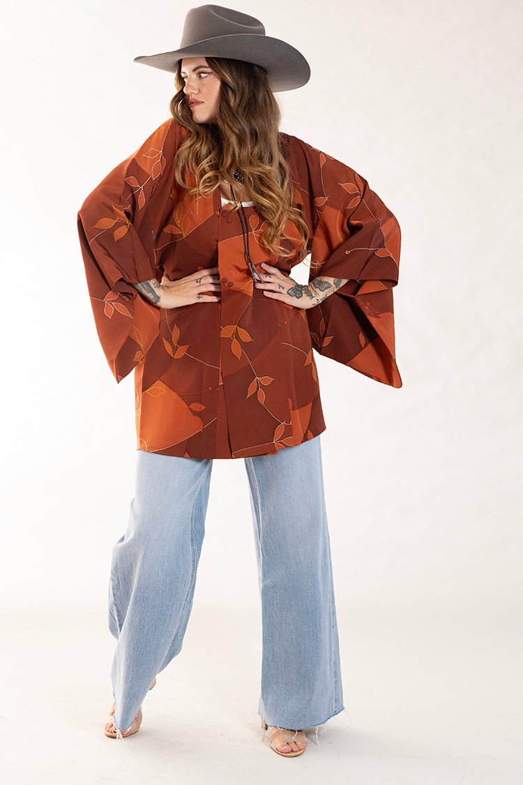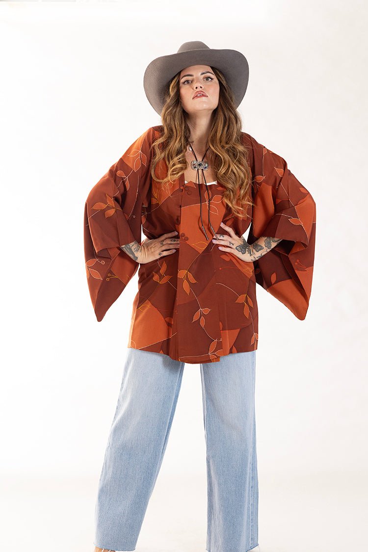 Rust Leaf Printed Kimono - Flea Style Rust Leaf Printed Kimono - Flea Style