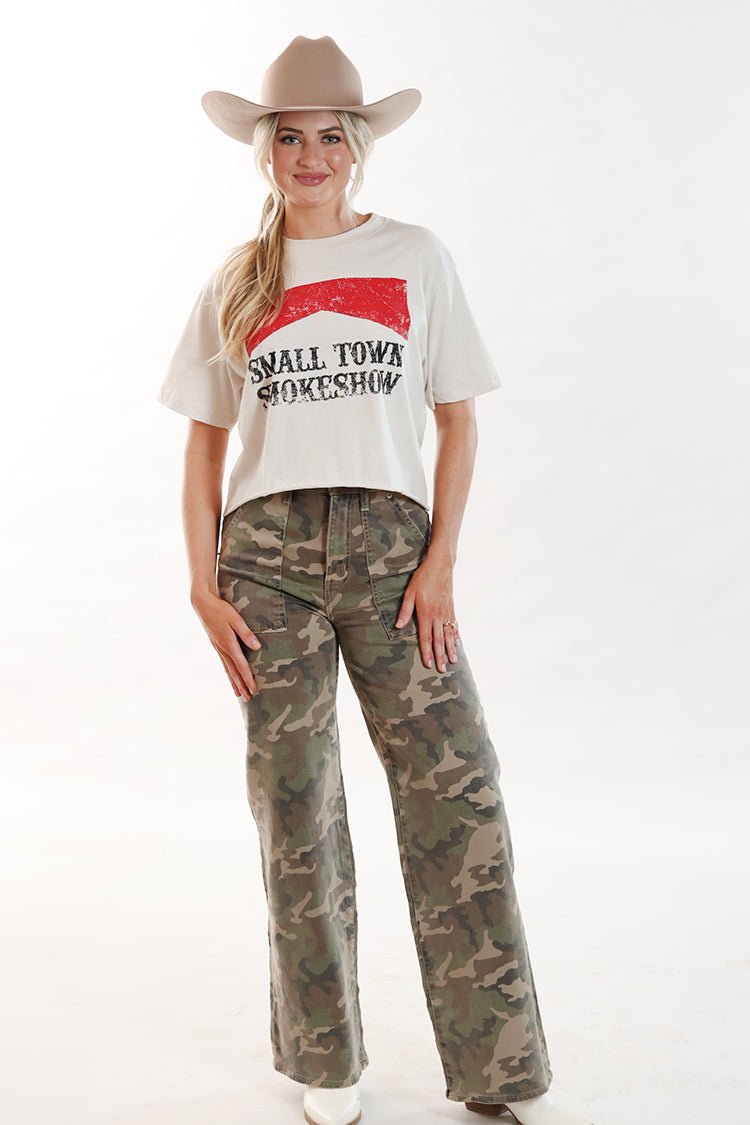 White Small Town Smokeshow Cropped Graphic T-Shirt
