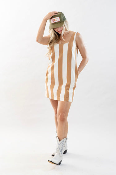 Tan and White Striped Denim Dress