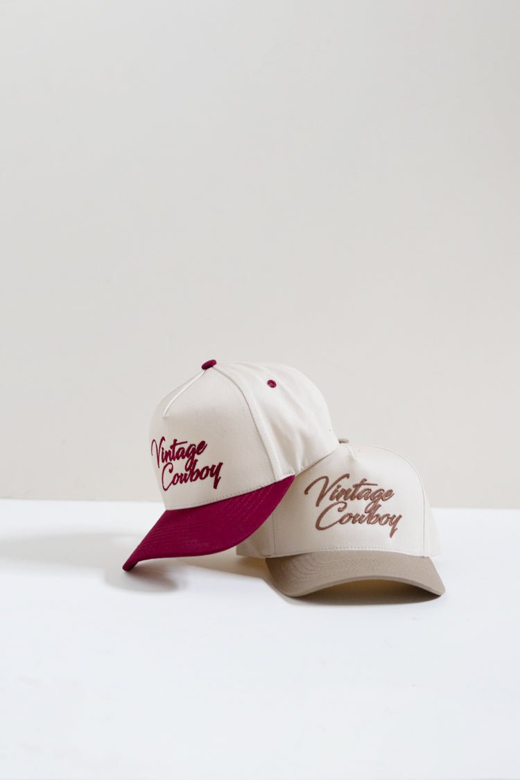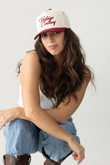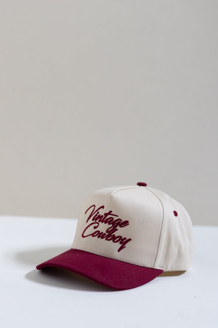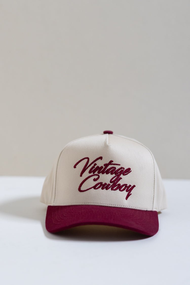Our vintage cowboy embroidery two-tone baseball cap brings classic western charm with a modern twist. Featuring bold “Vintage Cowboy” script embroidery on a clean cream front and a contrasting beige or burgundy brim, this cap delivers effortless style with a rugged edge. The structured fit and adjustable back make it as comfortable as it is cool, perfect for rodeo weekends, country concerts, or laid-back everyday wear. Whether you’re pairing it with denim and boots or a graphic tee, this cap is the perfect finishing touch for any cowboy-inspired look. Yeehaw-worthy and timeless, just the way you like it.