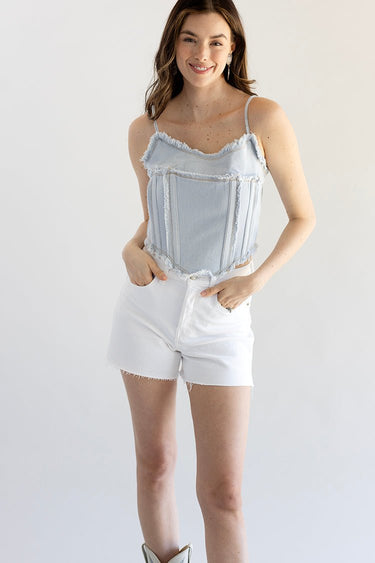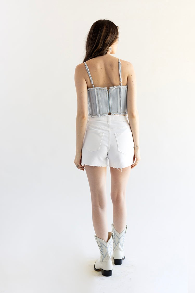 White Bottom Line Denim Shorts
