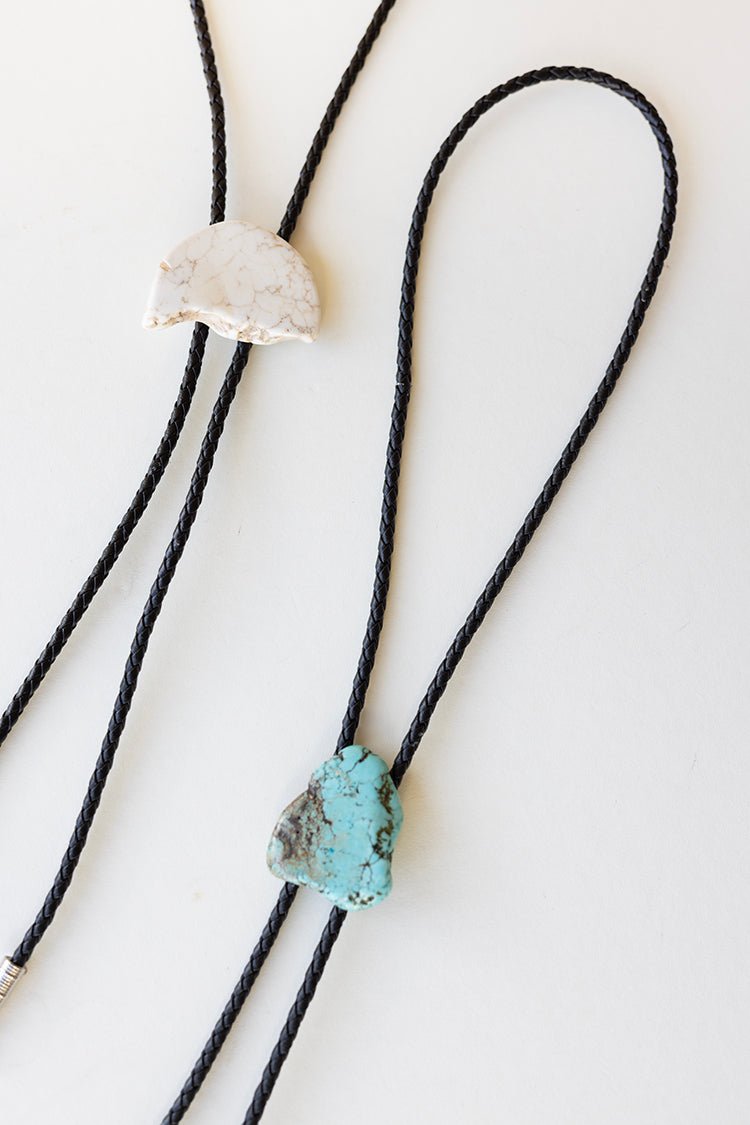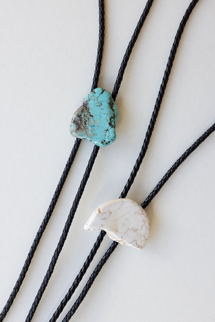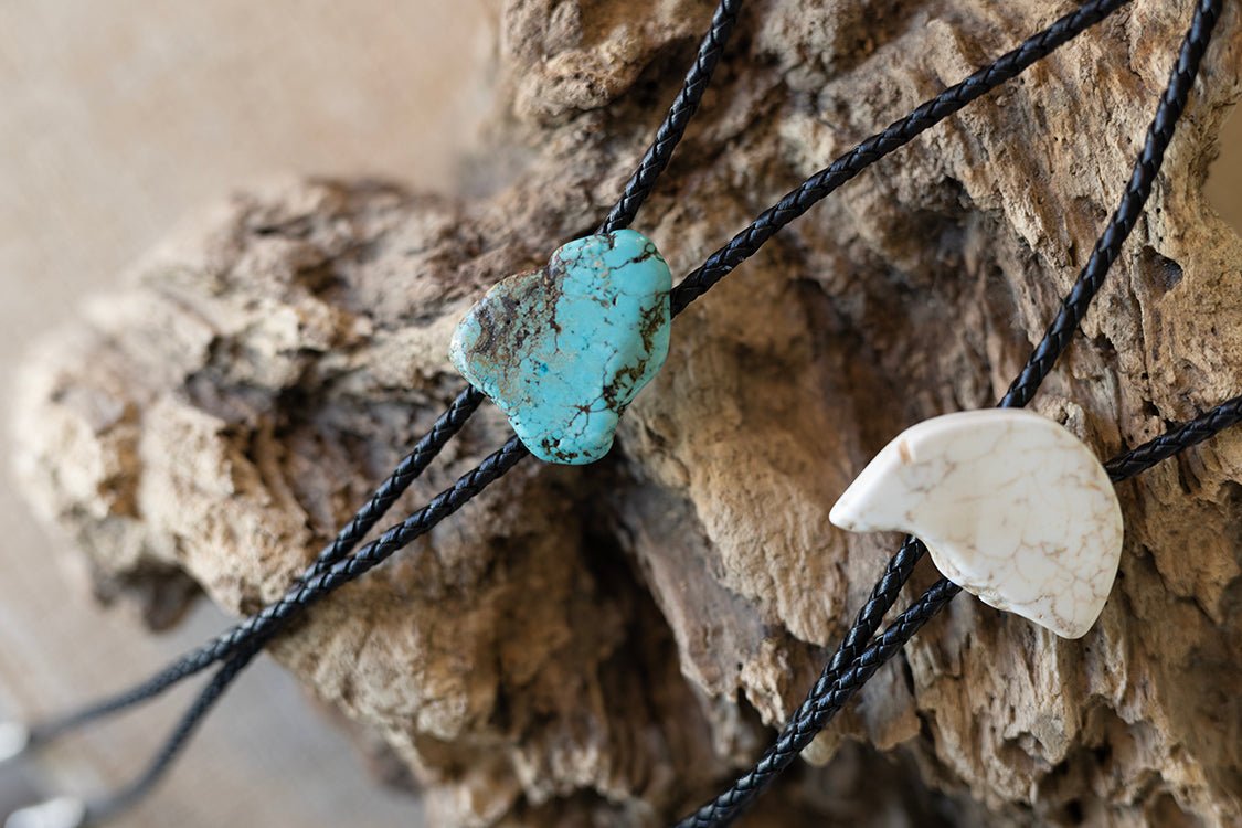 Our Flea Style exclusive bolo ties are a perfect blend of rustic charm and modern style. Featuring natural stone accents, these bolo ties add a soft edge to any outfit. The braided leather cords and sleek metal tips create a classic look with a contemporary twist, making them versatile enough for both casual and formal wear. Perfect for those who love unique, statement-making pieces.