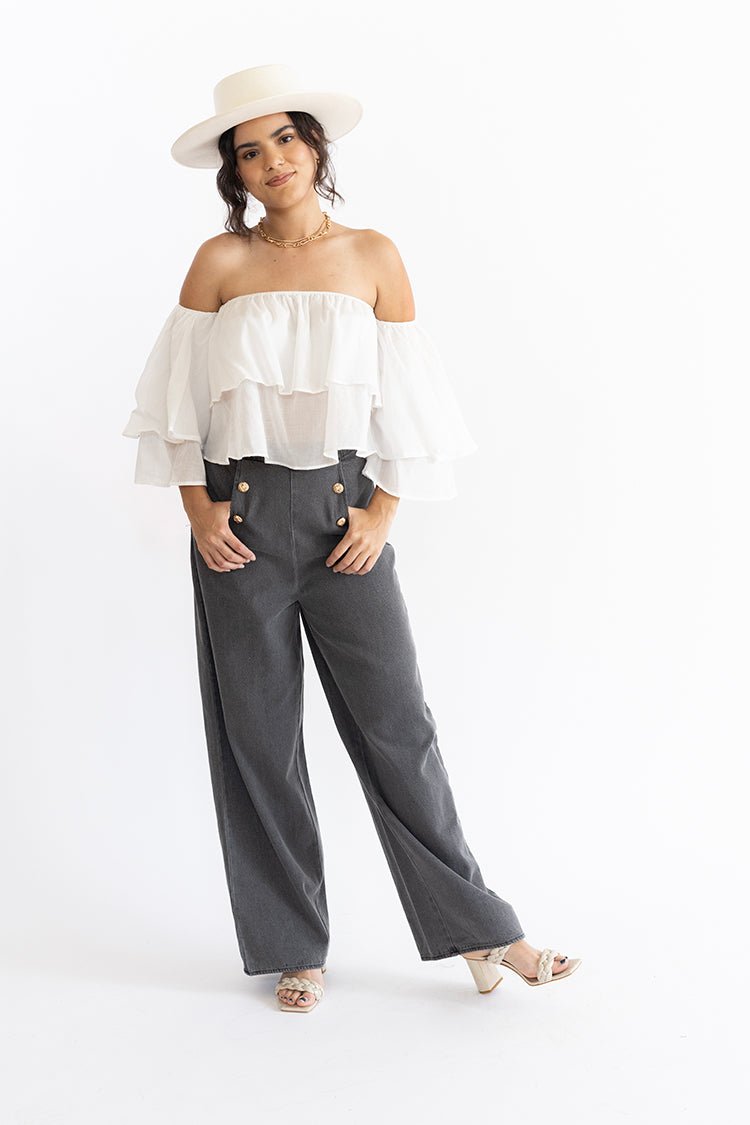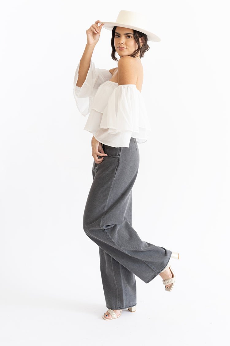 Gray Chambray Flowy Trouser - Flea Style Gray Chambray Flowy Trouser - Flea Style