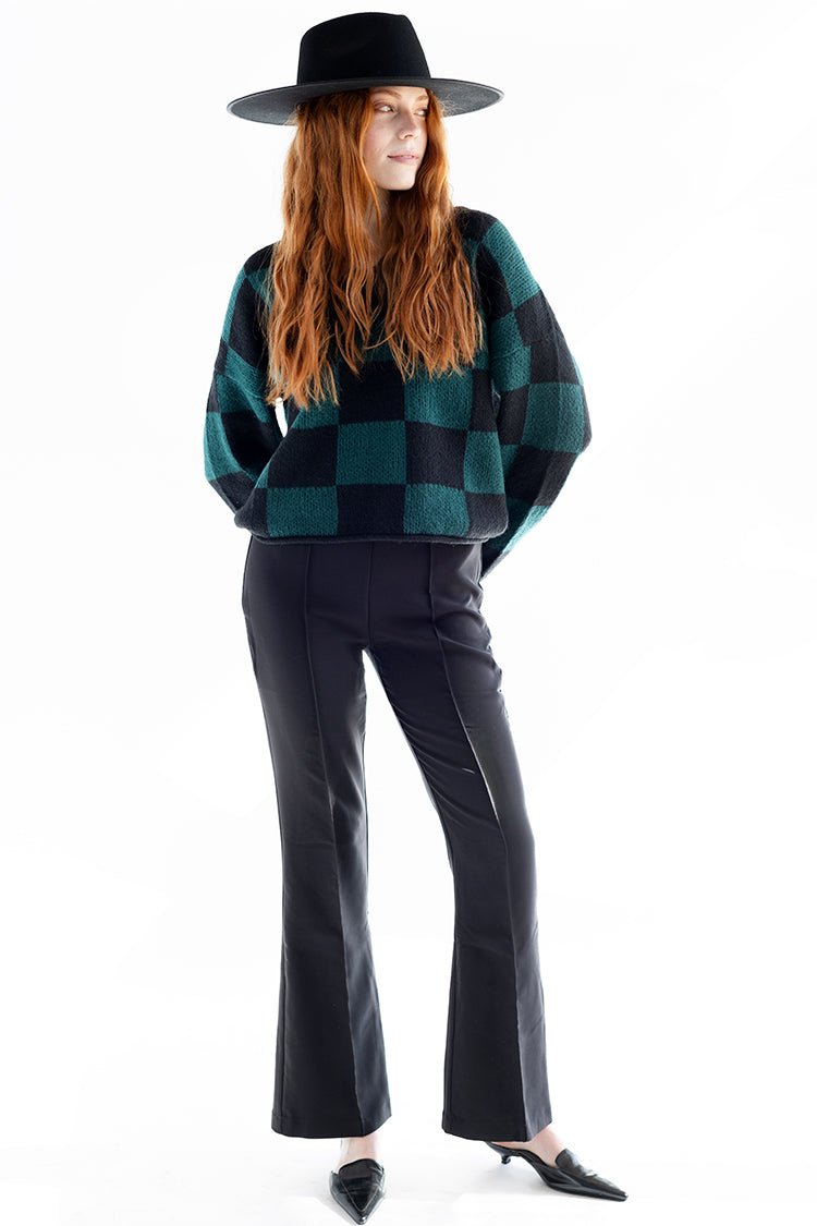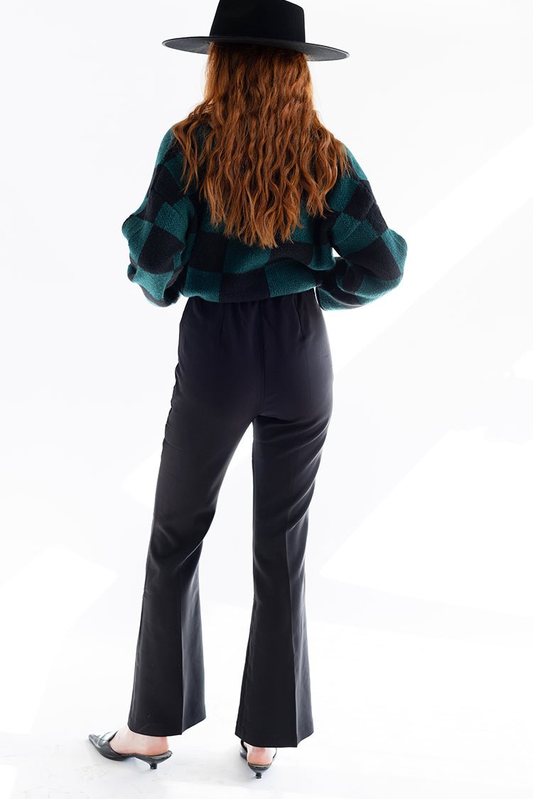 These black flare pants are so versatile! The material and vertical pleat detail in front elevate them while the classic flare design can easily be dressed down with a rocker tee or simple seater. Wear these day to night with any top in your closet. Bonus: The waistband is elastic!