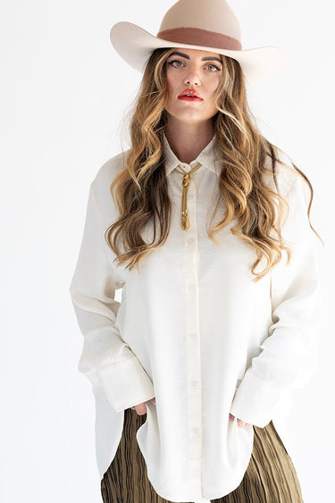 Classic Long Sleeve Ivory Button Down Blouse