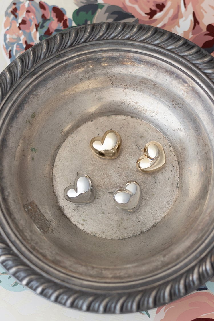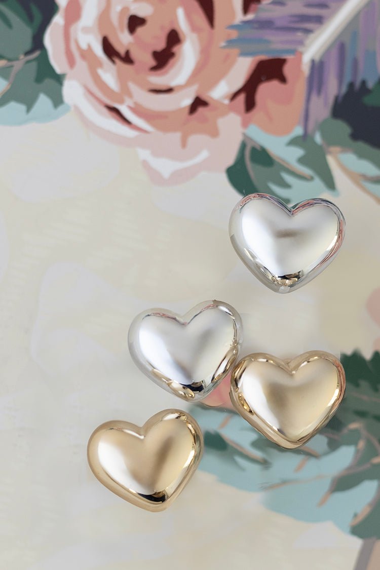 Puffy earrings are so popular! Add a bubbly heart design to your mix. These simple gold and silver options are a sweet addition to your ear party collection.