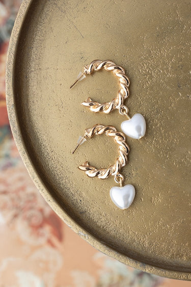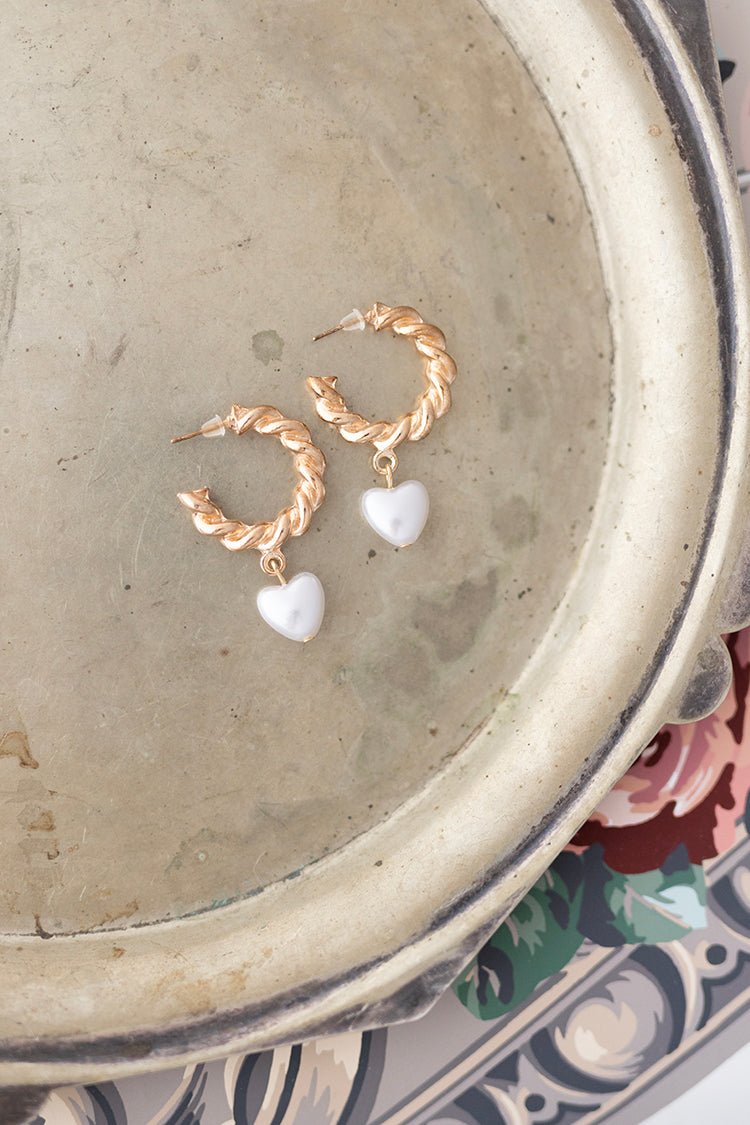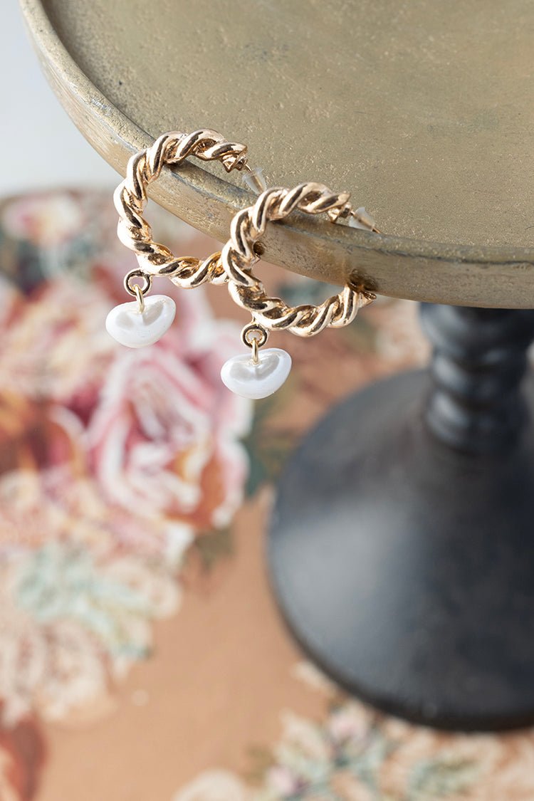 These twisted gold hoops get a sweet touch with dangling pearl charms. The 2" diameter makes these classic hoop earrings easy to wear everyday.