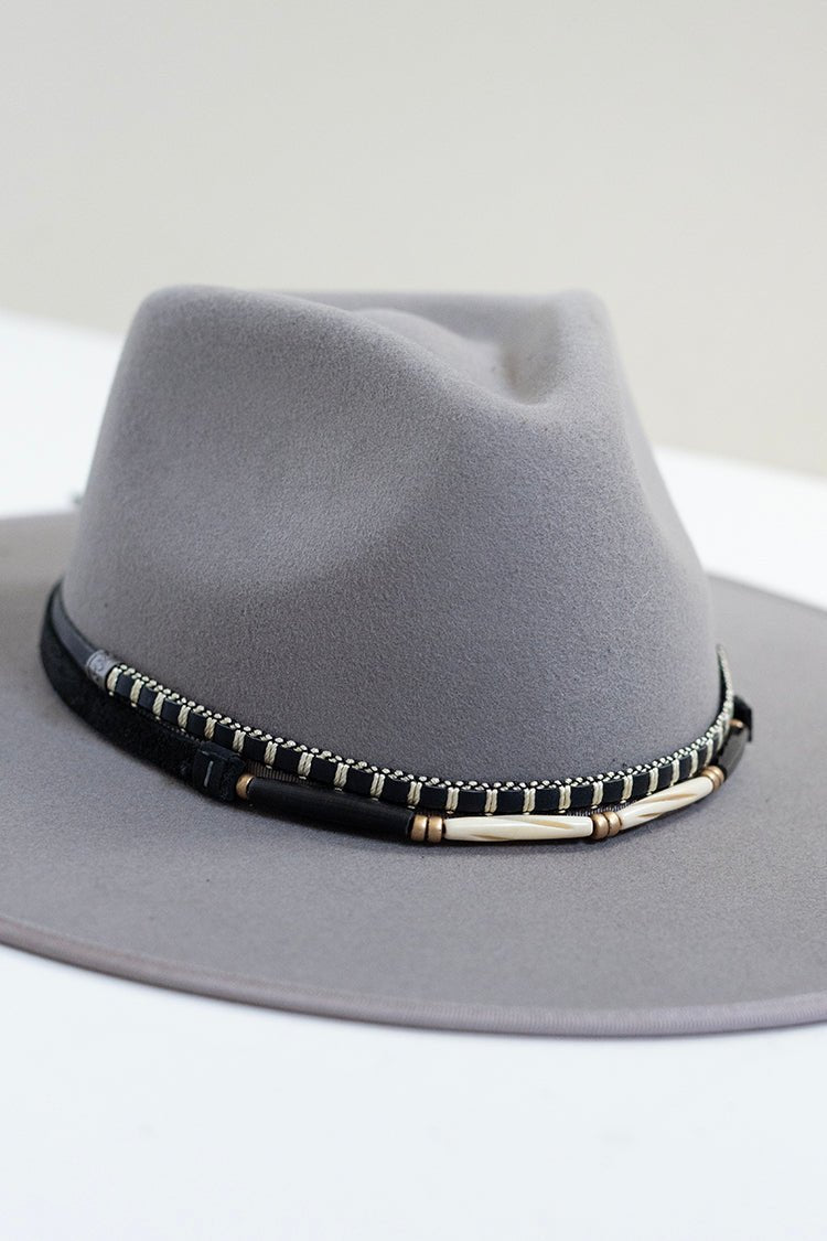 Elevate your hat with this striking two-tone leather band detailed with subtle stitching. This adjustable band is the perfect way to top off your look with cowboy-inspired character.