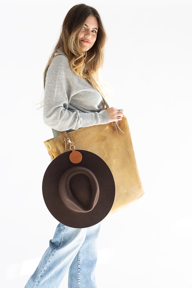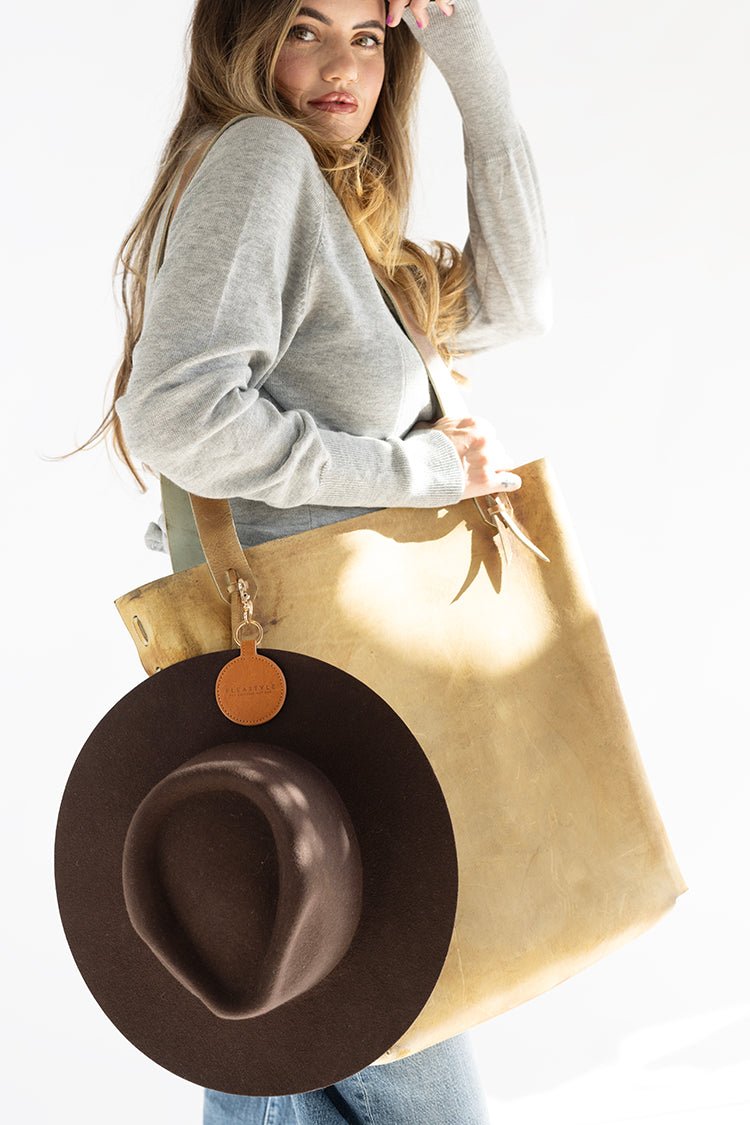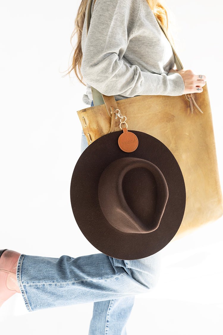 Traveling with your hat doesn't have to be a headache anymore with this chic hat clip. What looks like an everyday keychain, is actually a super functional magnetic hat clip that easily clips onto any purse, bag or suitcase. Just place your hat between the two magnets and you have the perfect hat holder on the go.