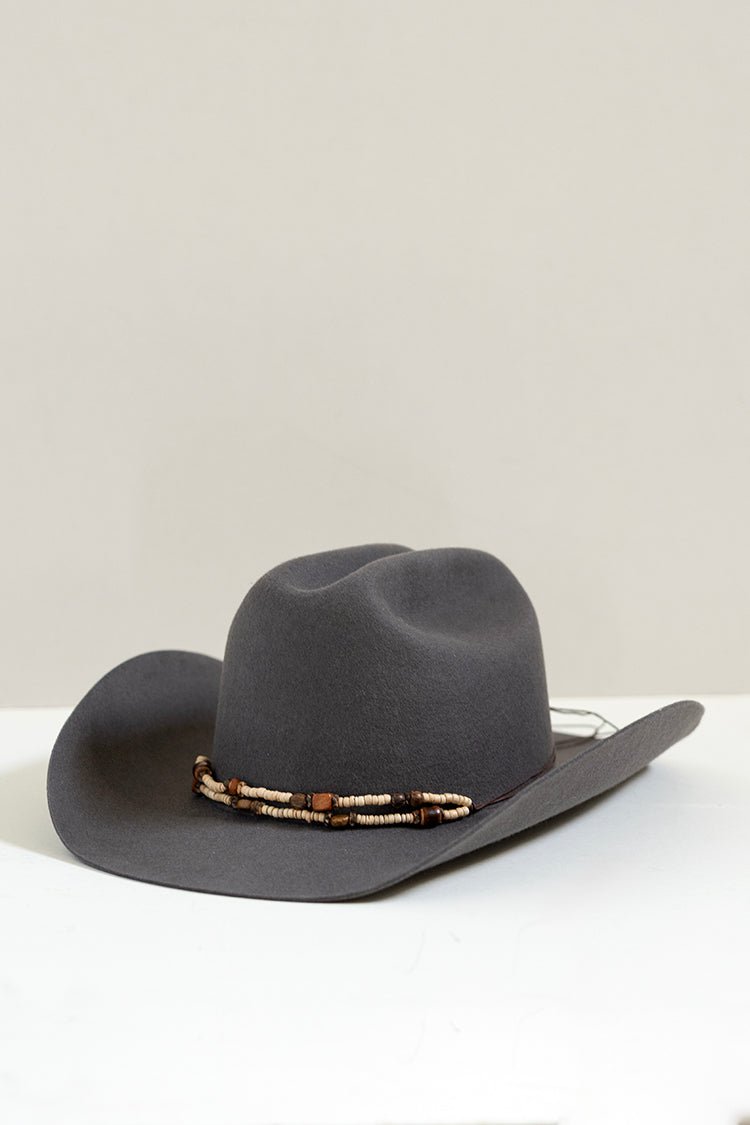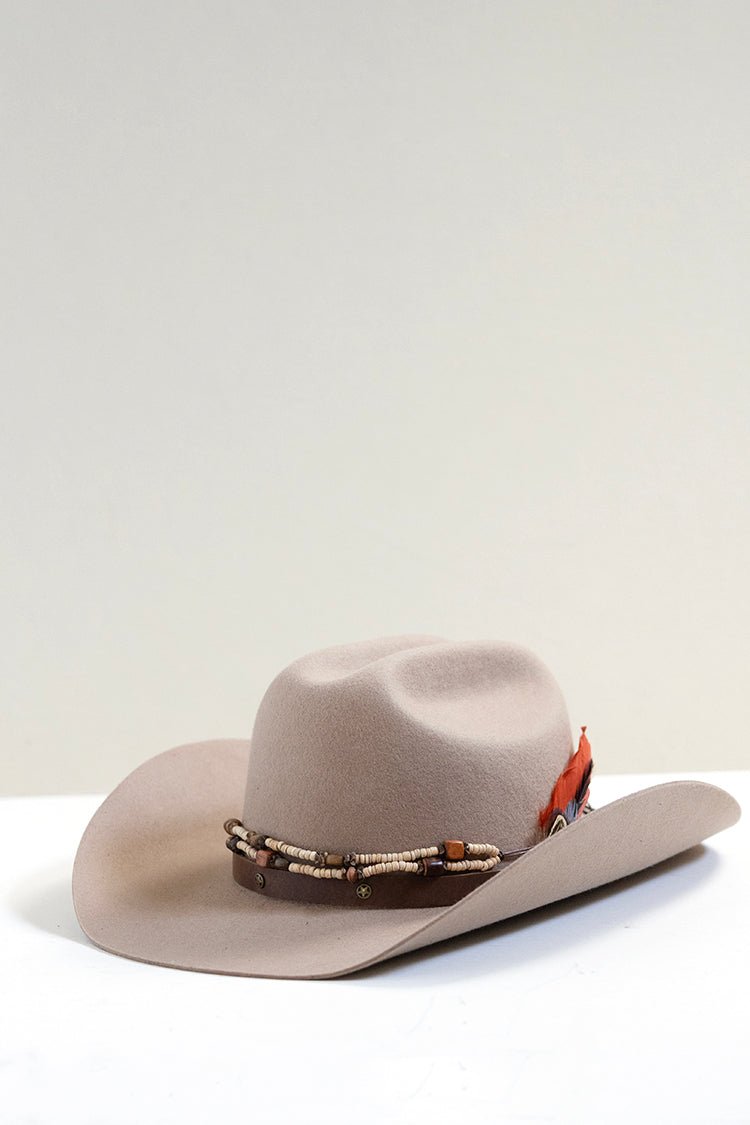 Boho-cowgirls, this hat band is for you. The layers of cream and wood-toned beads bring warm rustic texture. This adjustable band offers a subtle yet striking way to personalize your favorite hat.