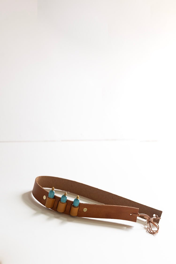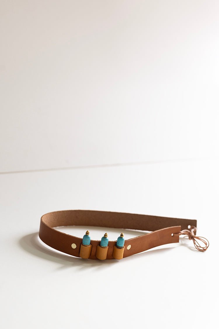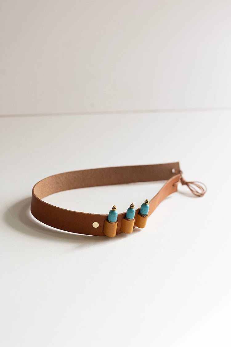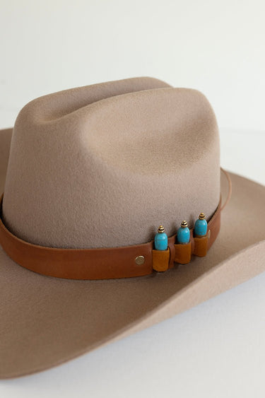 Turquoise Stud Bullet Casing Leather Band Hat Band