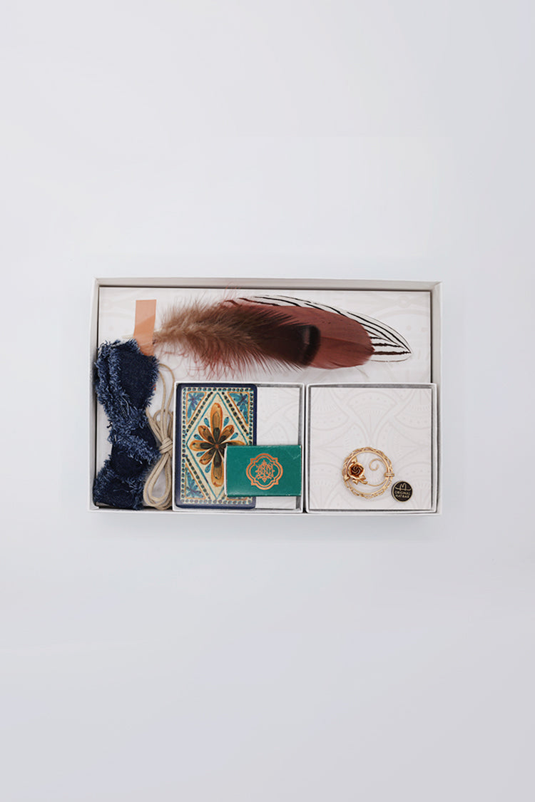 The Western kit channels classic cowboy vibes with earthy hues and Americana motifs. This kit includes a circular rose brooch and floral playing card.