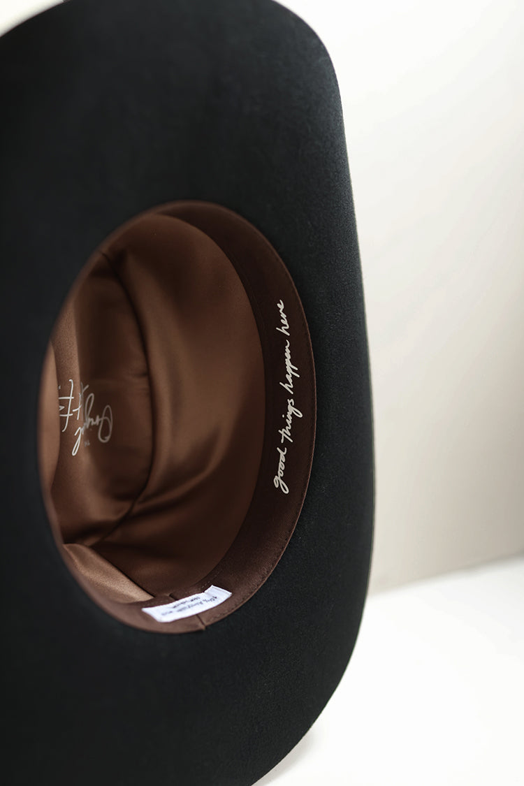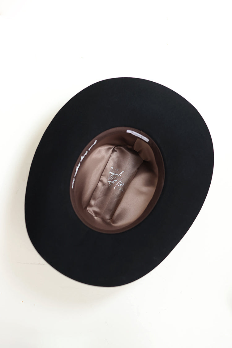 Add a touch of cowgirl to any look with our curled brim wool Rider hat in a versatile, black color. Book a virtual session with one of our stylists to customize your hat band and make it uniquely you.