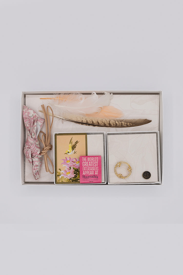 - Includes feathers, hatbands, a playing card, matchbook, vintage brooch and Original Hat Bar bronze pin