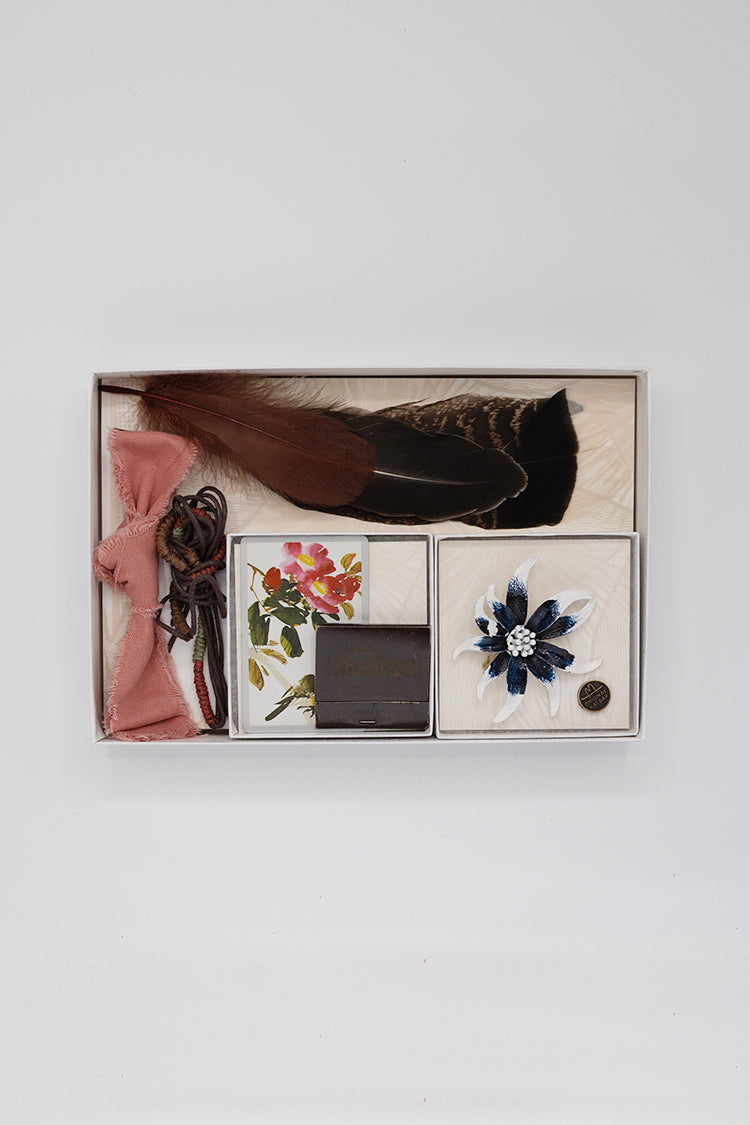 - Includes feathers, hatbands, a playing card, matchbook, vintage brooch and Original Hat Bar bronze pin