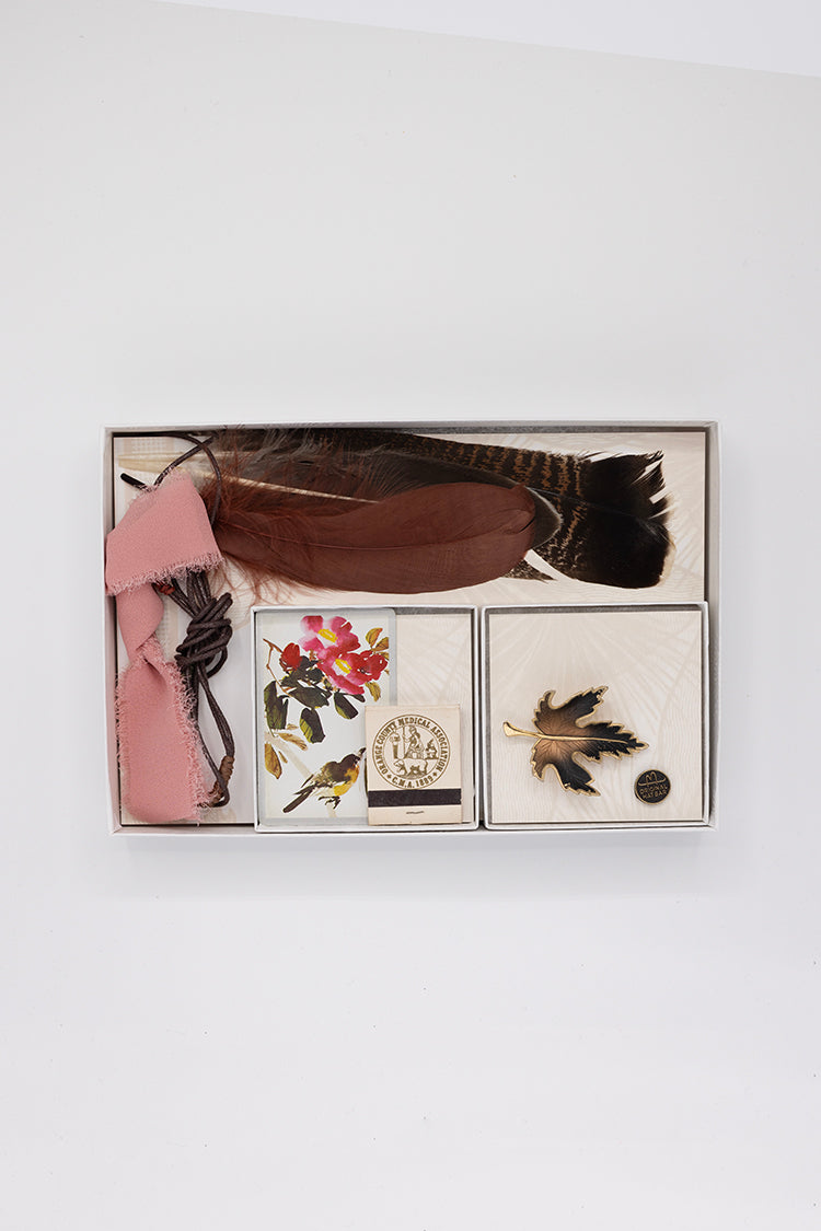 - Includes feathers, hatbands, a playing card, matchbook, vintage brooch and Original Hat Bar bronze pin