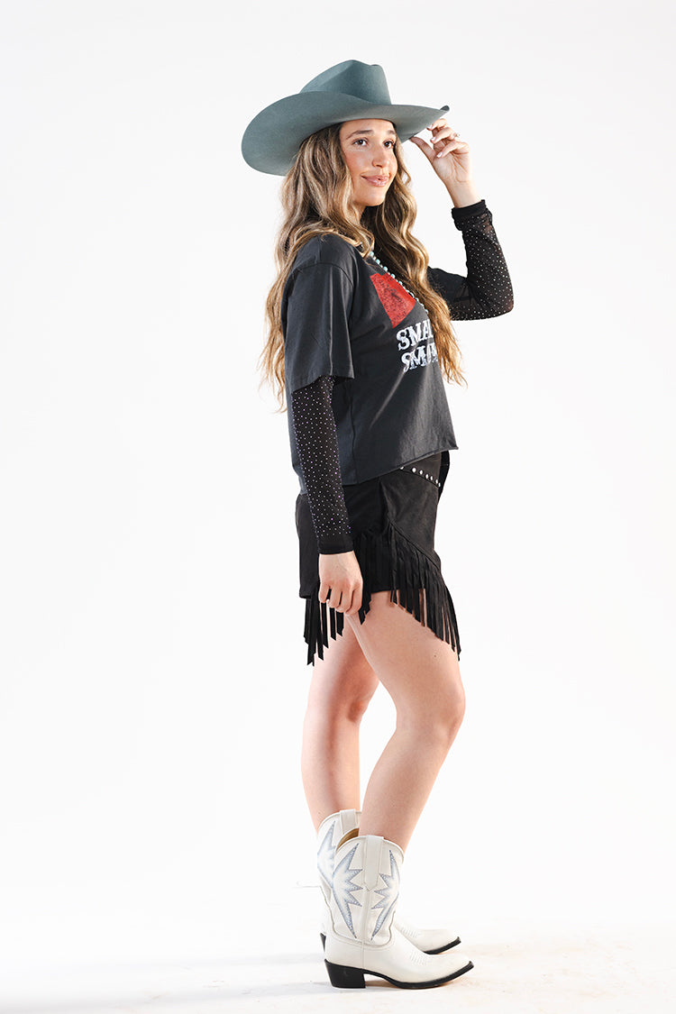 Sparkle Mesh Layering Top - Black