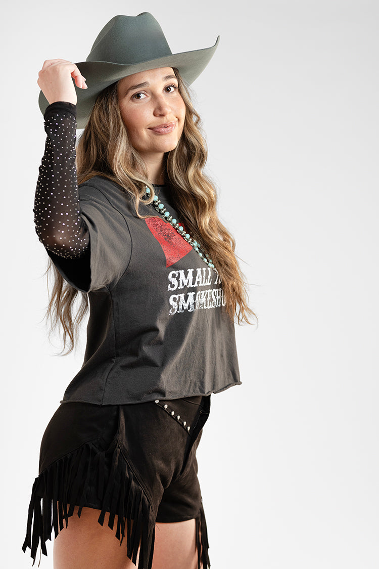 This sheer black mesh top adds a subtle shimmer with an easy, lightweight feel. Designed with long sleeves and a slim silhouette, it layers effortlessly while bringing just the right touch of sparkle to everyday looks. Perfect under jackets, vests or worn on its own, it styles seamlessly for nights out, casual days or dressed-up moments.