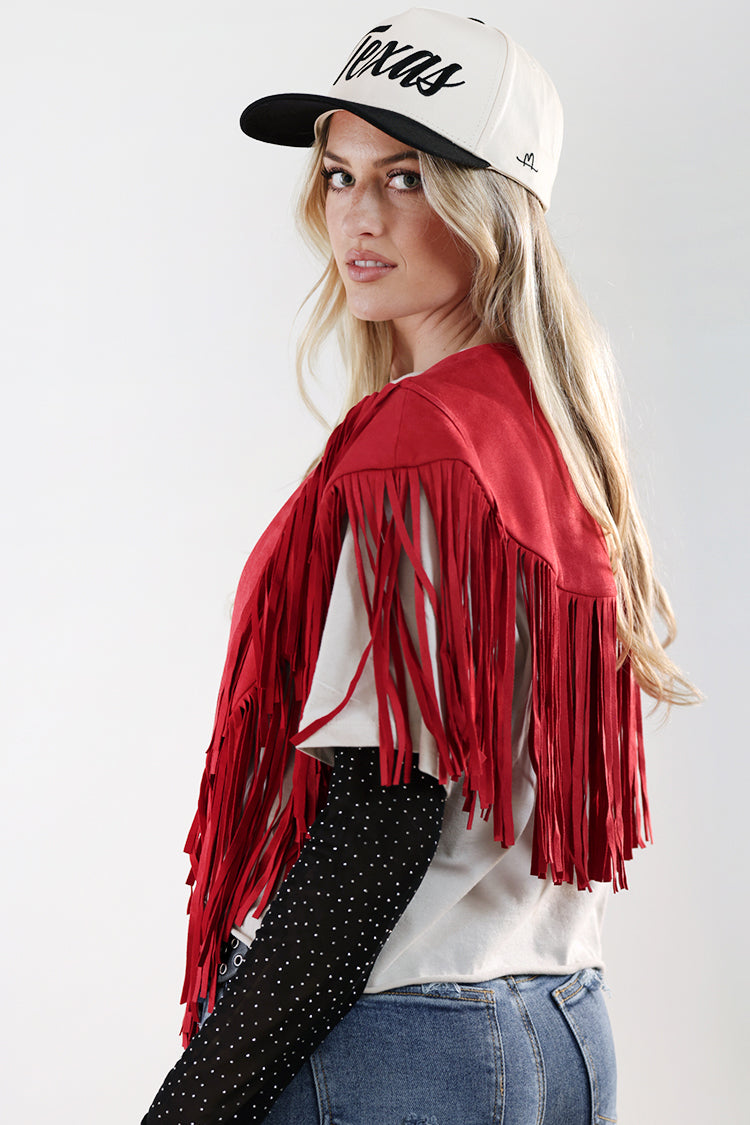 Suede Fringe Shrug - Red