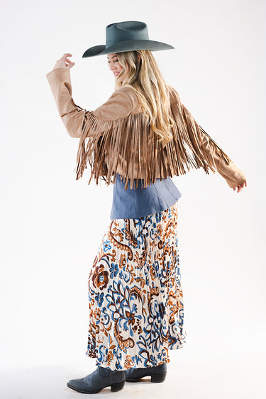 Suede Fringe Western Moto Jacket - Tan