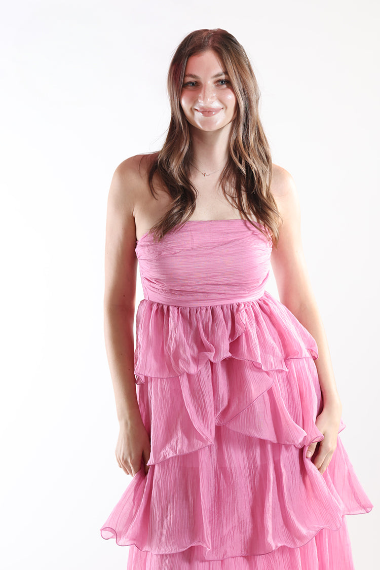 Tiered Ruffle Midi Dress - Pink