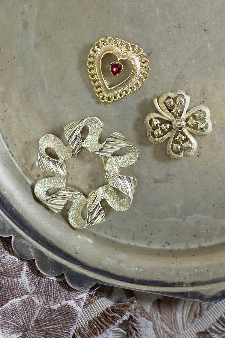 Vintage-Red-Rhinestone-Gold-Heart-Brooch-FleaStyle used to customize hat bands on flat brim or western cowboy hats-FleaStyle