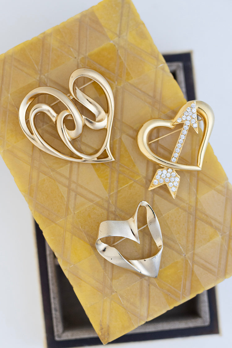 This vintage abstract heart brooch offers a modern, sculptural interpretation of a timeless symbol. Crafted in polished gold-tone metal, the open, flowing form creates a sense of movement and lightness, giving the piece a distinctive, artistic feel. Its smooth contours and dimensional design make it a striking accent on a jacket lapel or evening look.