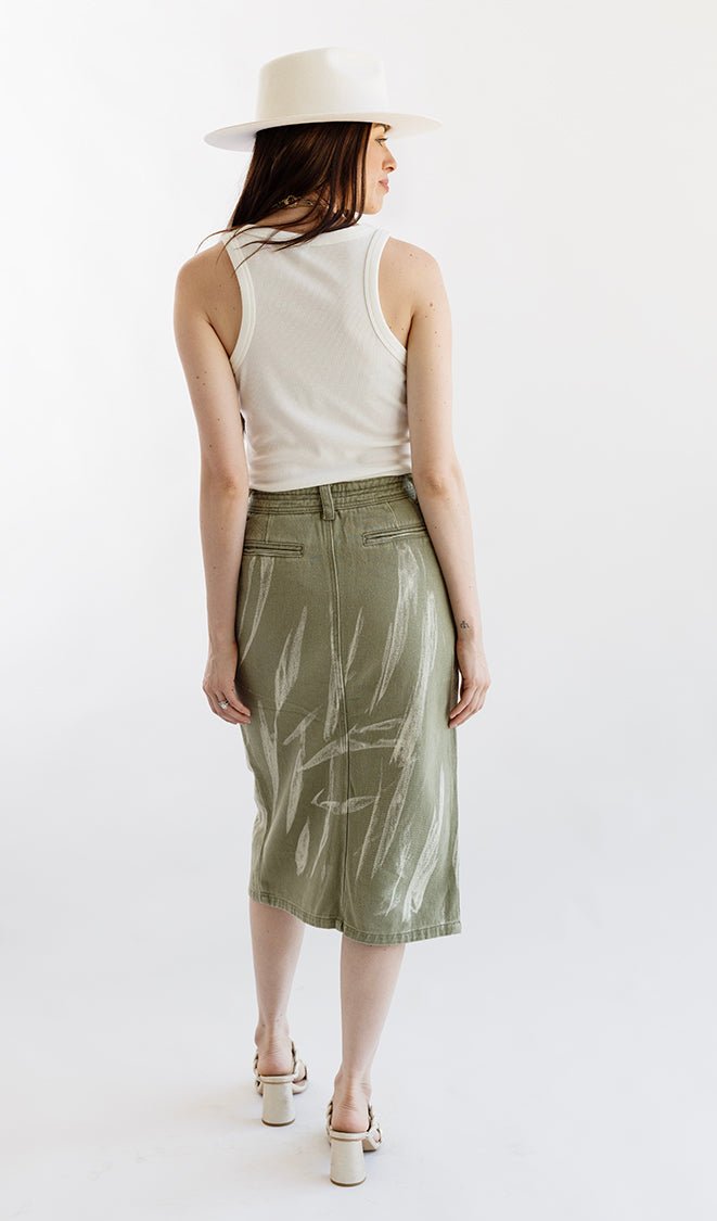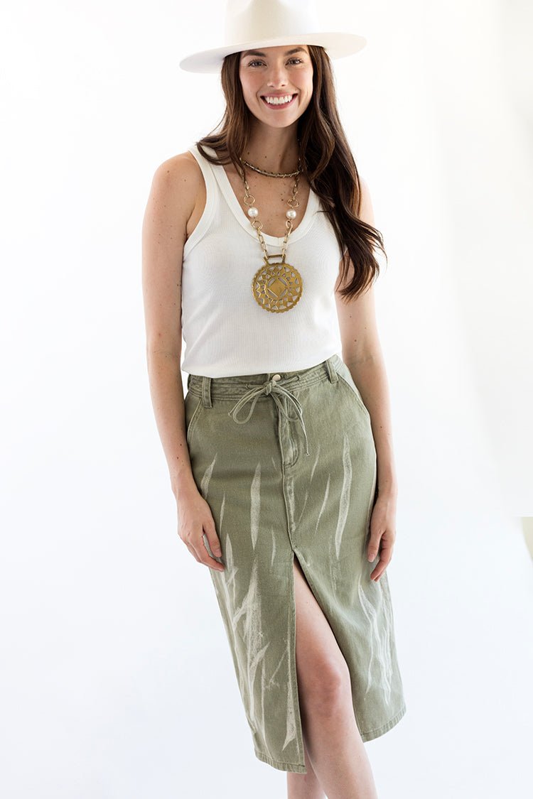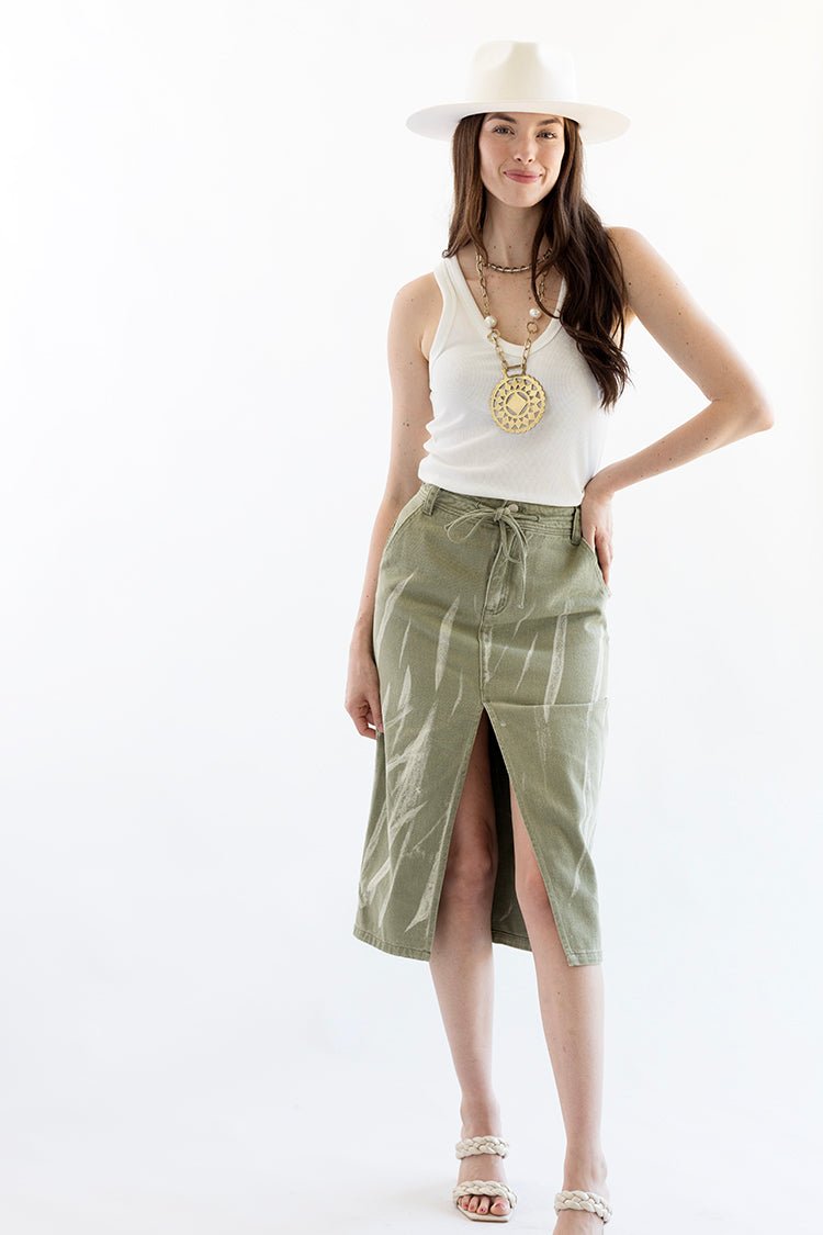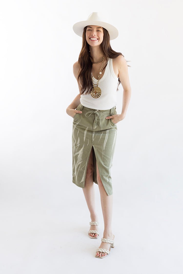 The coolest skirt is chic to its core. Our olive skirt gives a cargo flair with a pencil skirt fit. Pair with a simple white tank or statement top, this piece is so versatile to style!