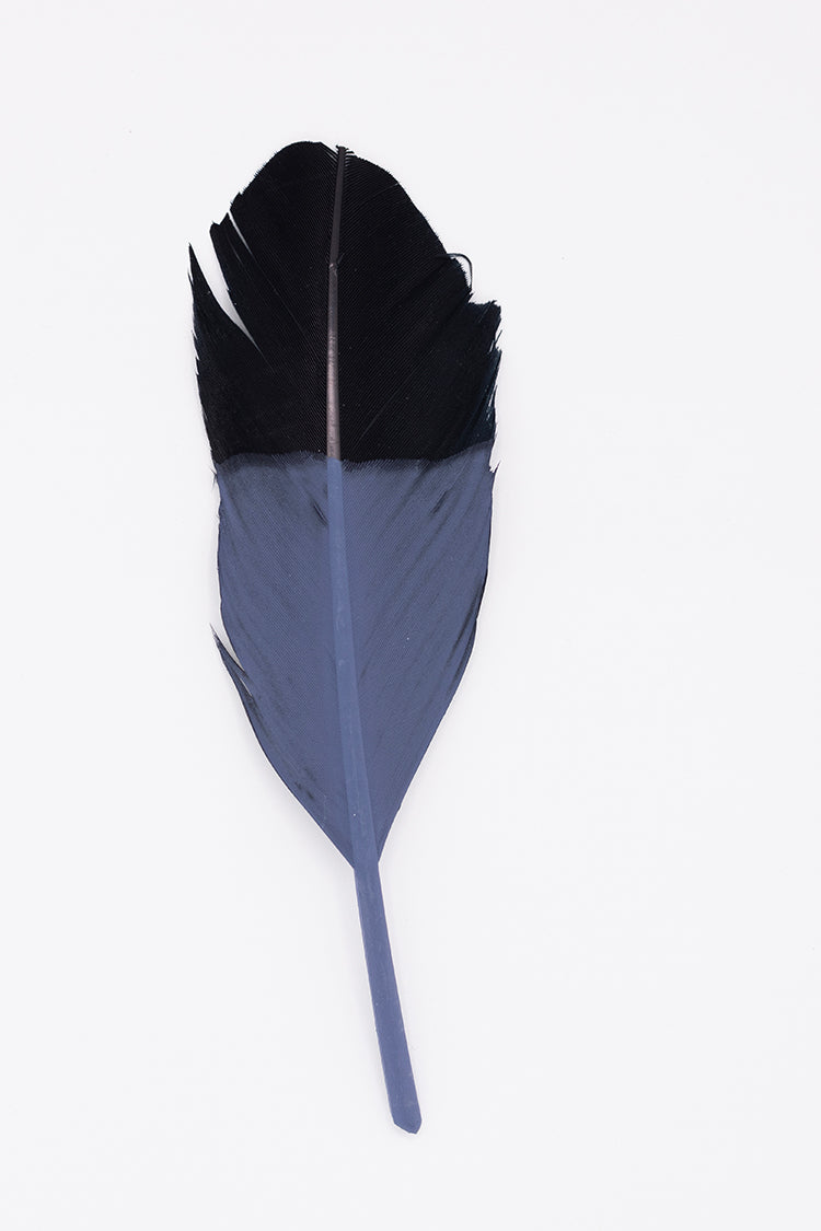 Handcrafted in our Dallas design studio and exclusive to Flea Style, this classic black feather is hand-dipped in a bold blue paint for a fun, striking, hat accessory. Our one-of-a-kind painted feathers bring dimension and personality to any hat.