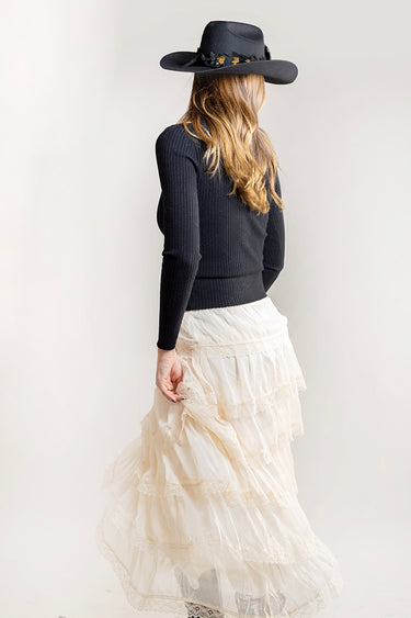 Tiered Chiffon Lace Midi Skirt - Ivory