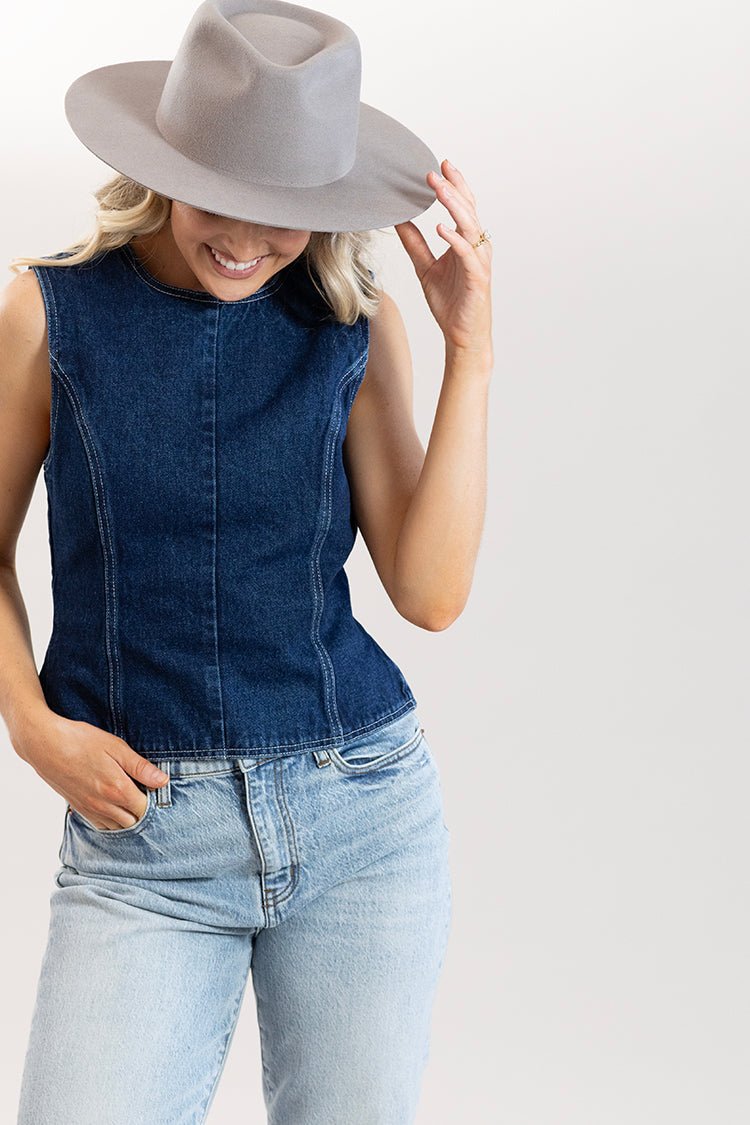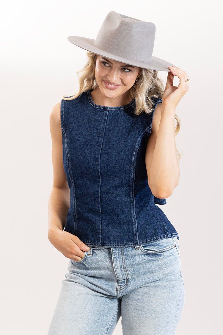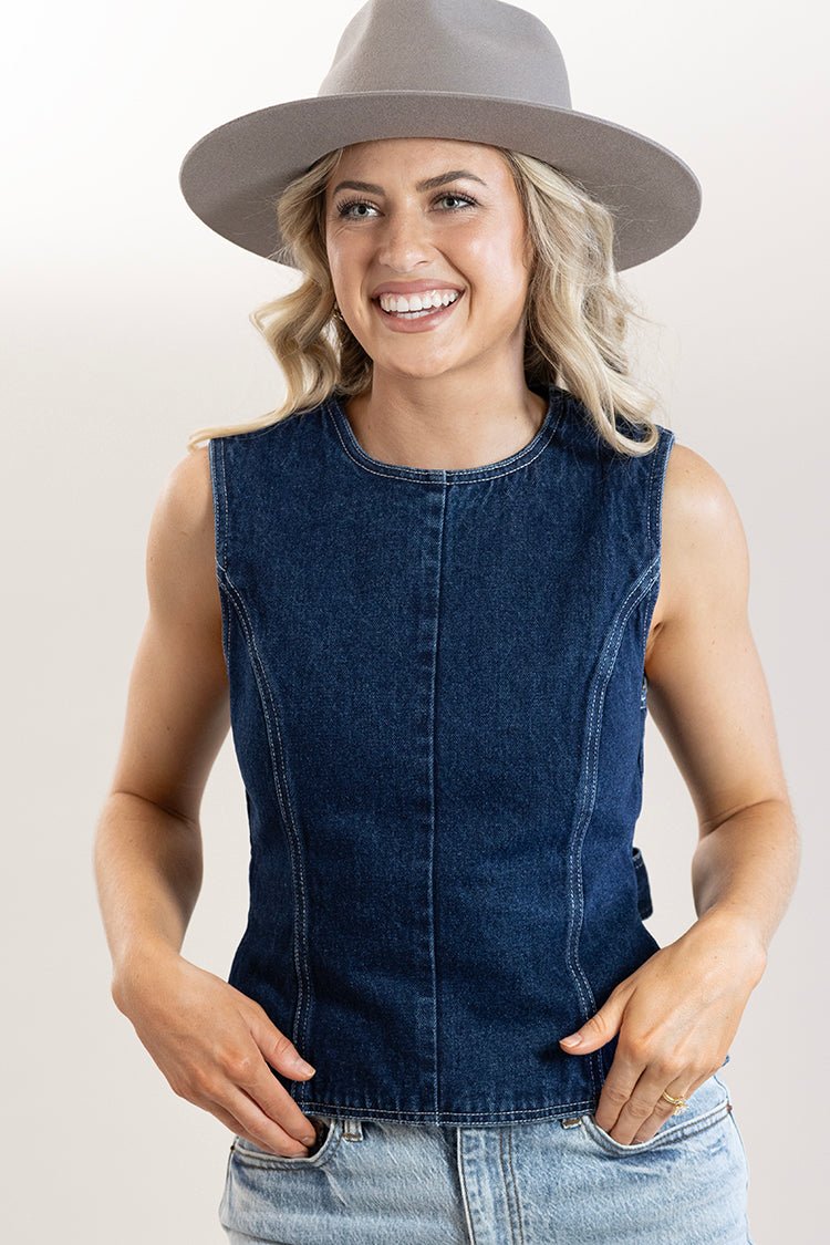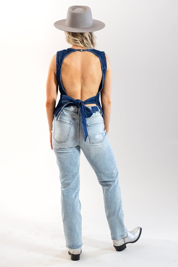 Dark Denim Cut Out Back Top - Flea Style Dark Denim Cut Out Back Top - Flea Style
