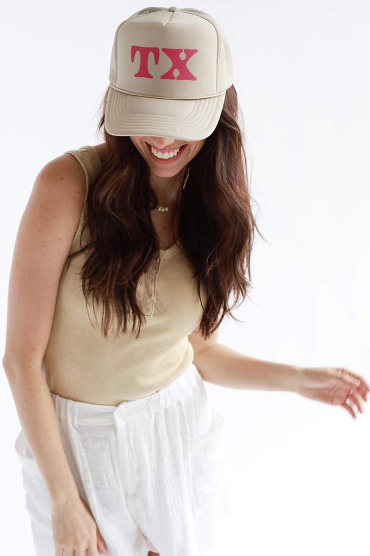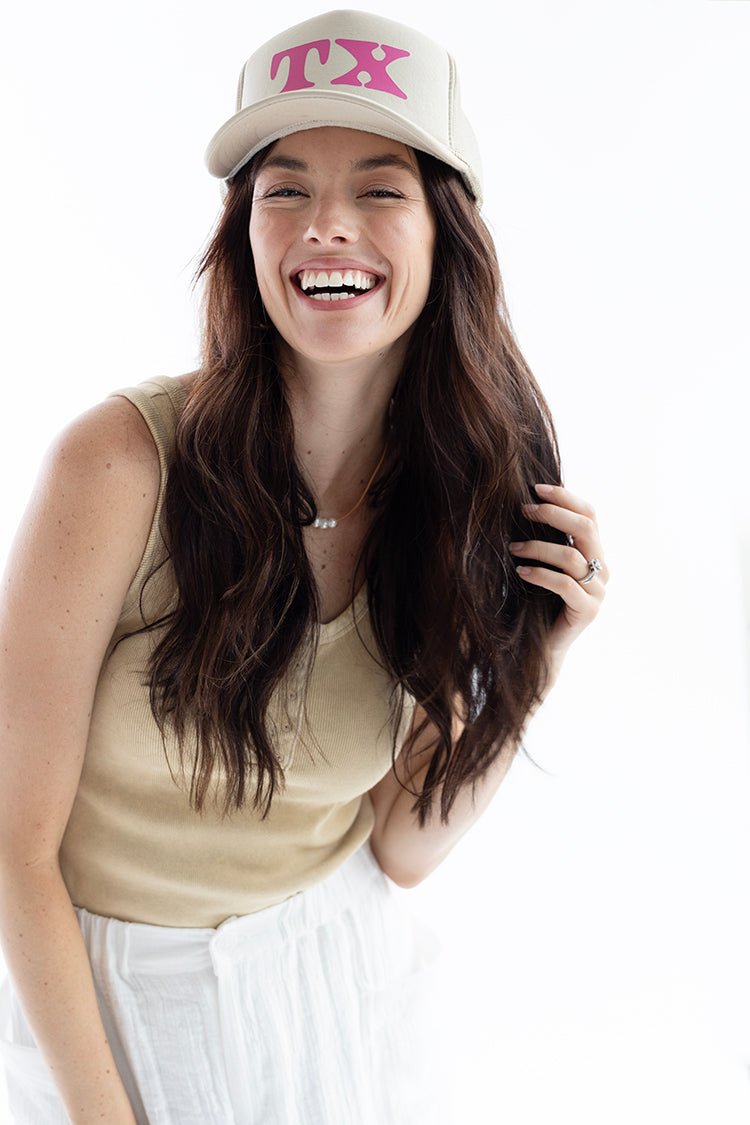 Khaki and Pink "TX" Trucker Hat - Flea Style