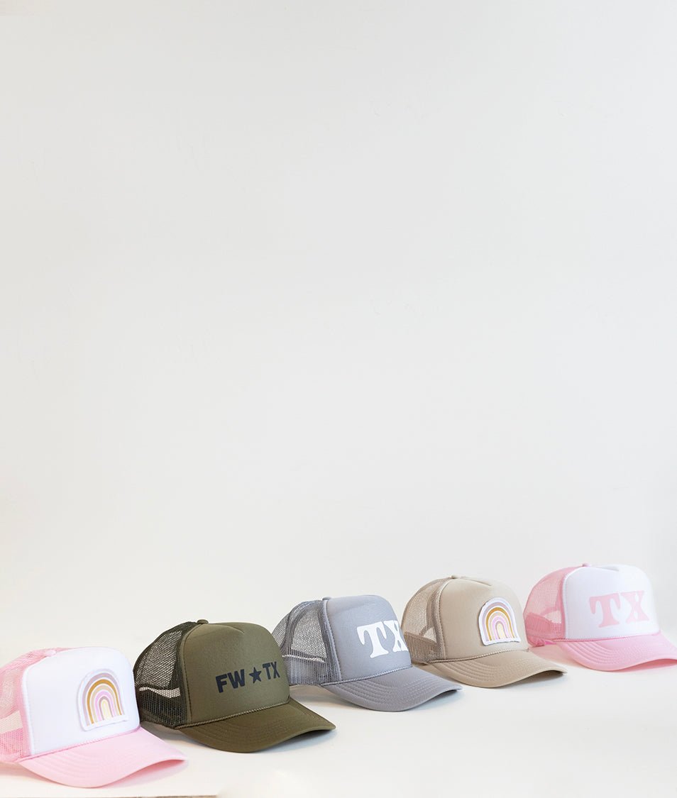 Show your Texas love with our exclusive "TX" bold font trucker hat! All of our trucker hats are designed in-house and vinyled by a small business in Prosper, Texas.