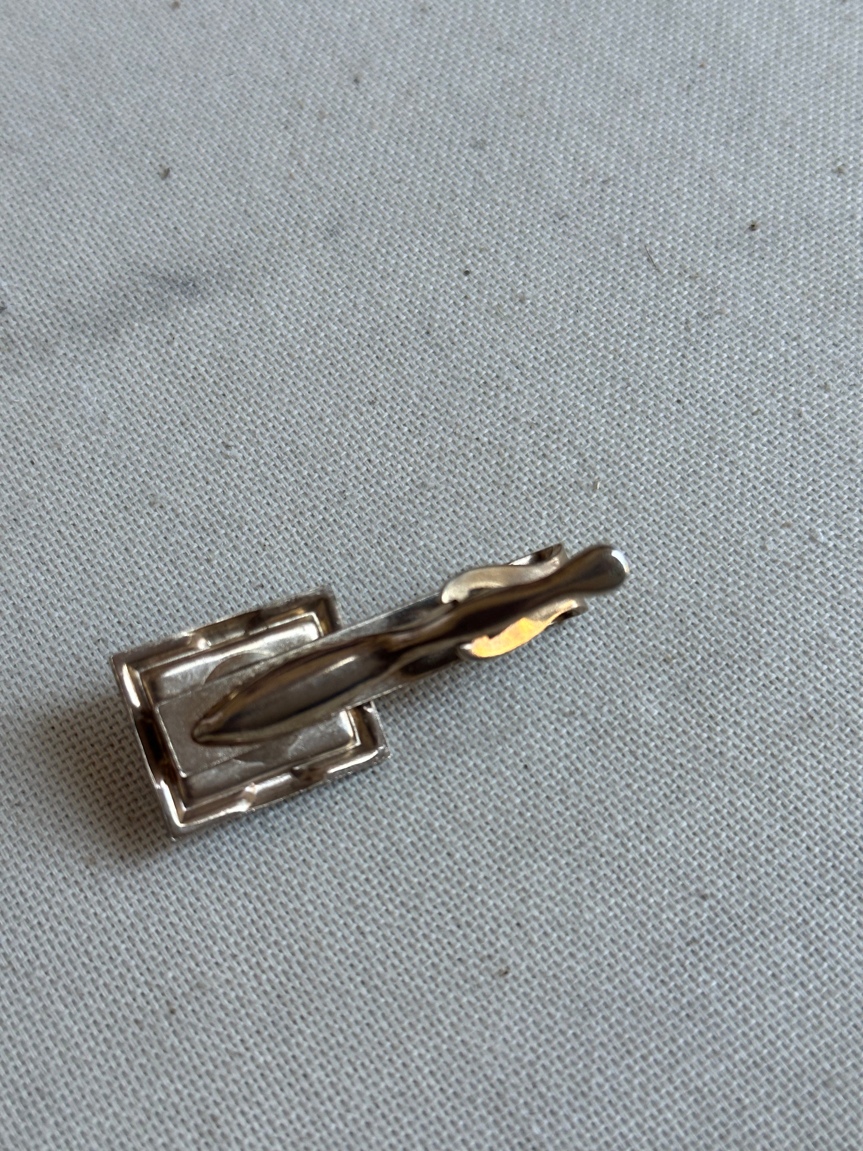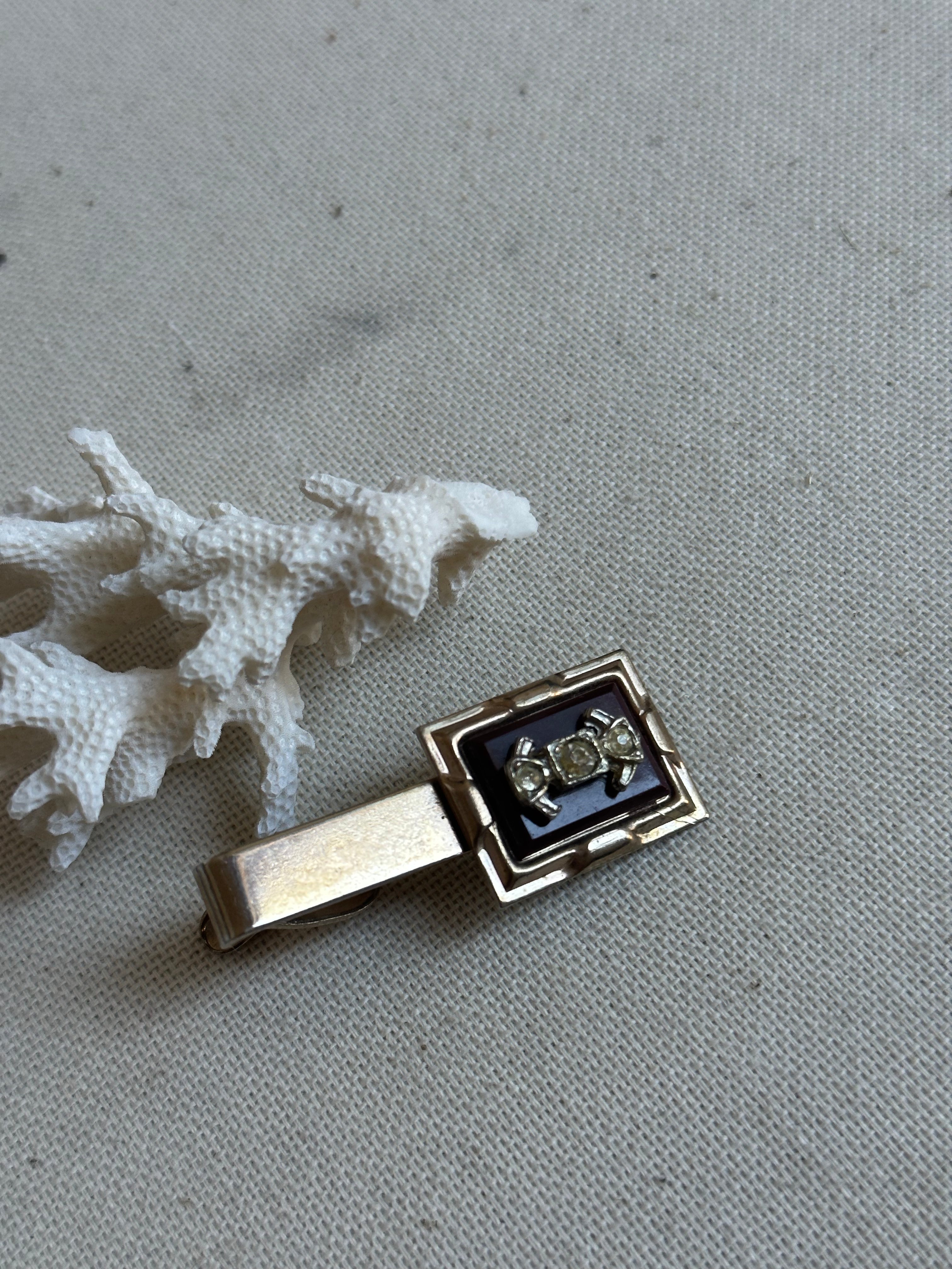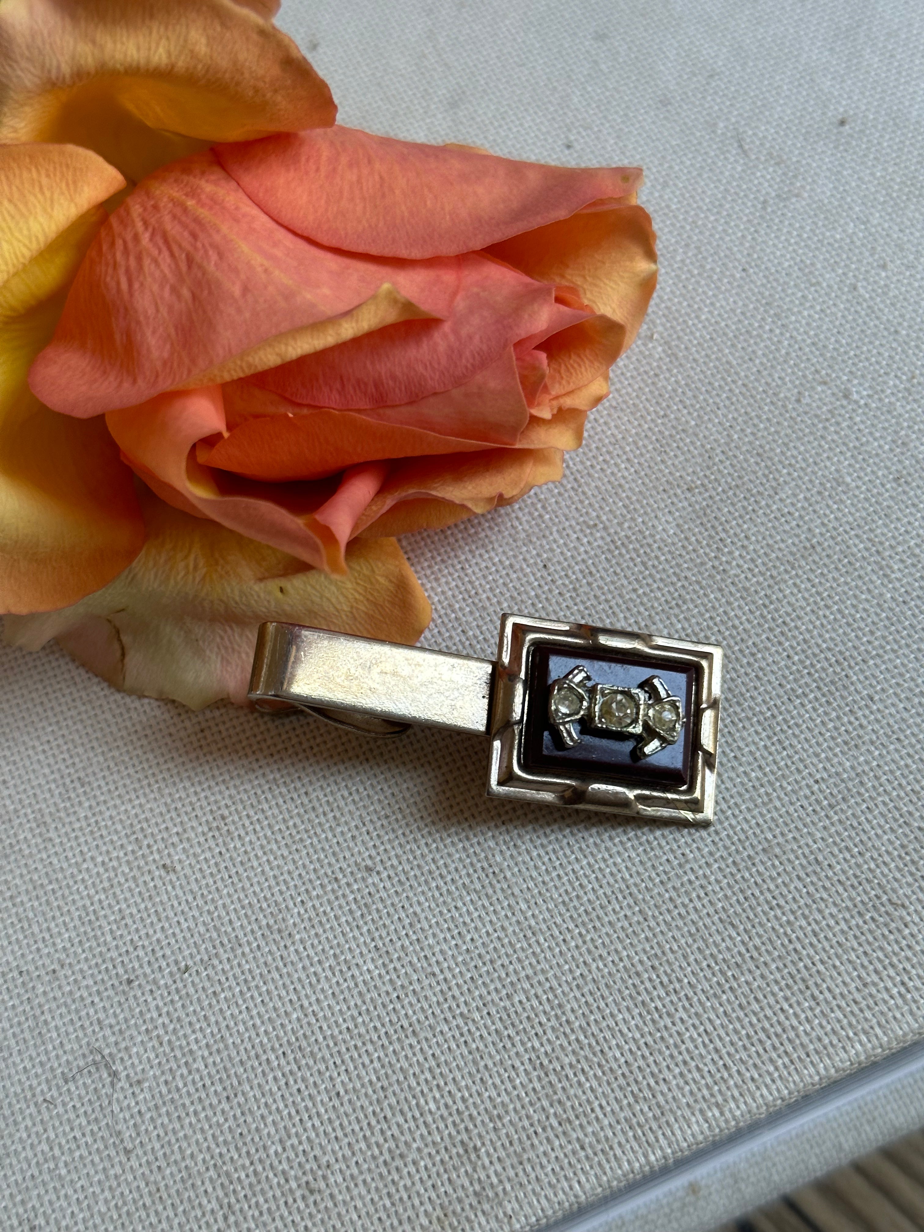 Vintage Matte Silver Tie Bar with Amber and Rhinestone Details