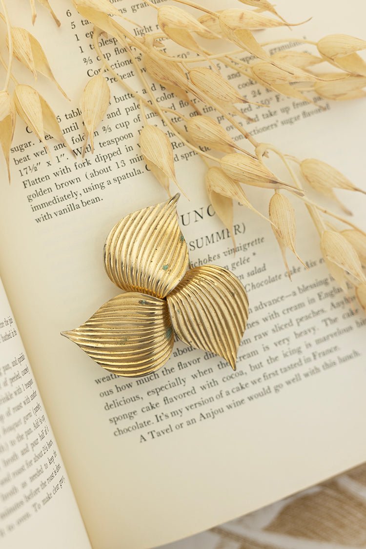 Vintage Three Leaf Ribbed Brooch - Flea Style