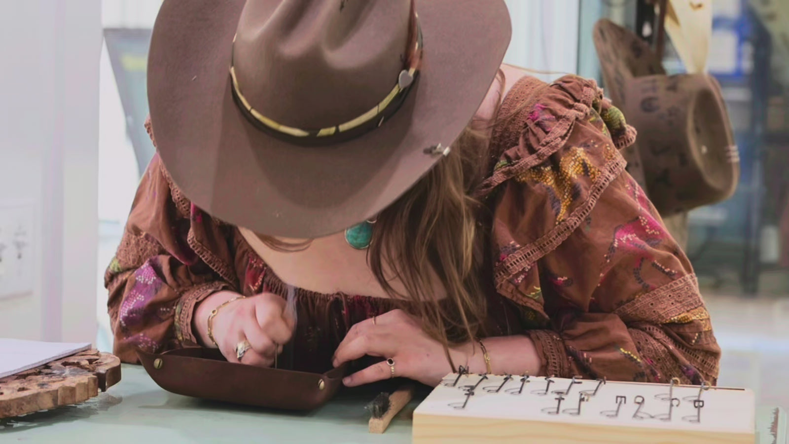 Fire, meet flair! Rooted in ranch tradition, a brand is a symbol of identity and pride — whether it’s a tribute to your heritage or something that makes your heart sing. Designing your custom cowboy or cowgirl hat at The Original Hat Bar is the perfect time to make your mark (and snap a smoky video while you're at it). We also brand leather goods and cowboy boots. Bring yours in, and let us make them extra special.