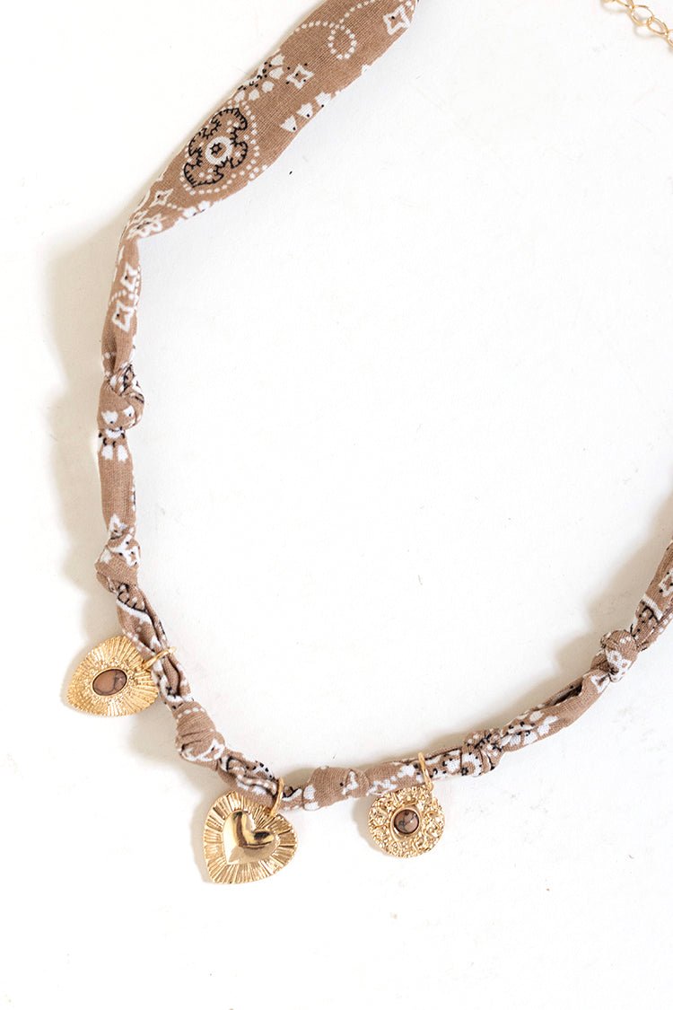 Beige Bandana Heart Charm Necklace