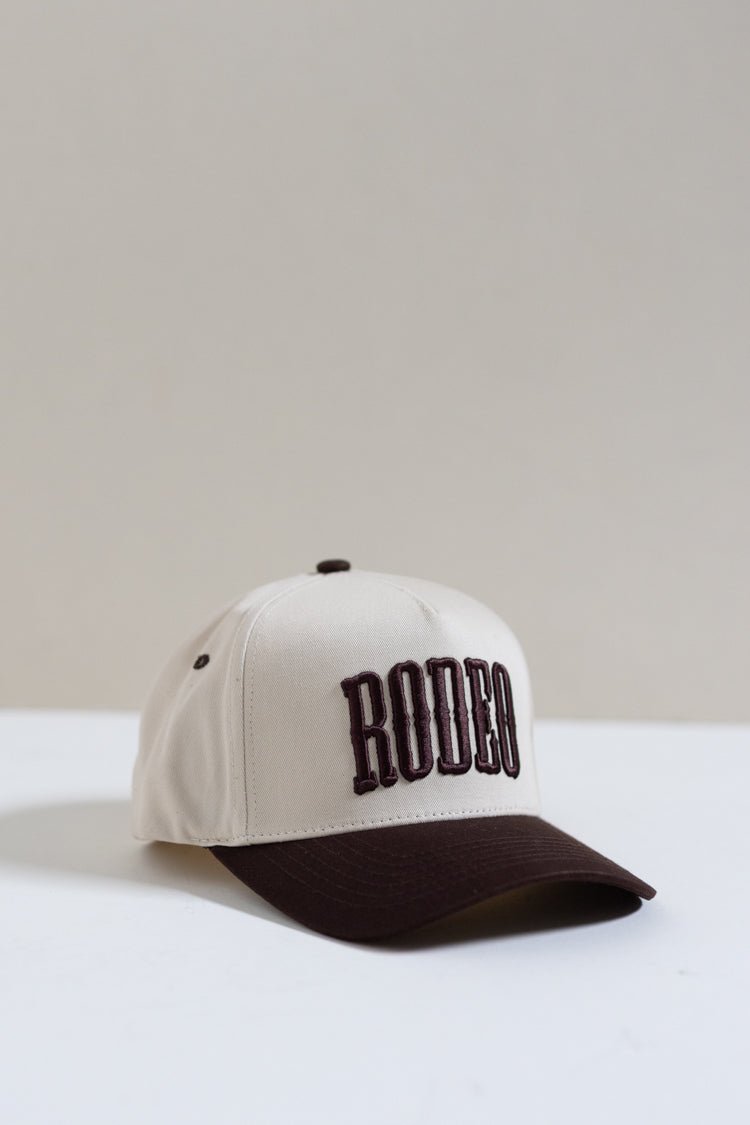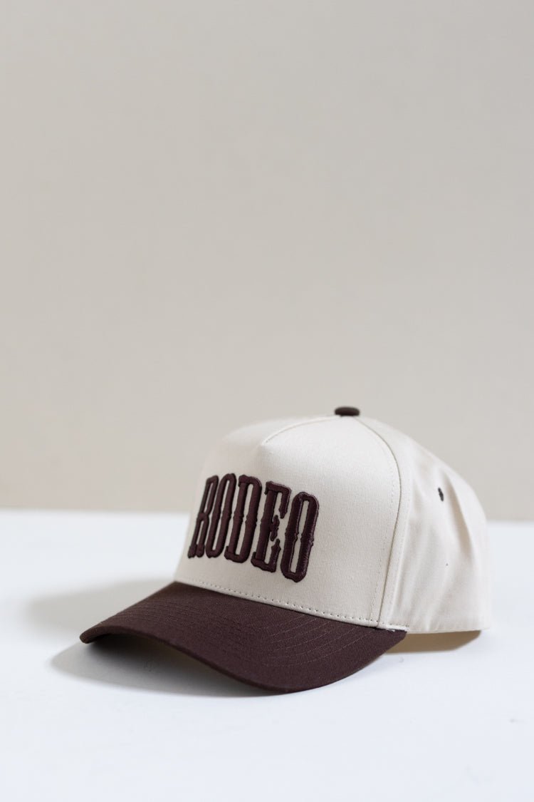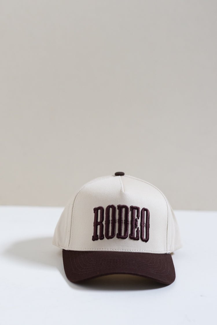 Our rodeo two-tone embroidered trucker hat is here to top off your western wardrobe with bold, ranch-ready flair. Featuring a classic cream crown and rich brown brim, this cap brings vintage rodeo vibes with a modern twist. The standout “RODEO” embroidery makes a strong statement, perfect for rodeo nights, country concerts, or just repping your southern roots in style. Designed with a structured fit, breathable mesh back, and adjustable snap closure, it’s as comfortable as it is cool. Whether you're saddling up or headed to town, this hat is the ultimate finishing touch for any cowgirl or cowboy look.