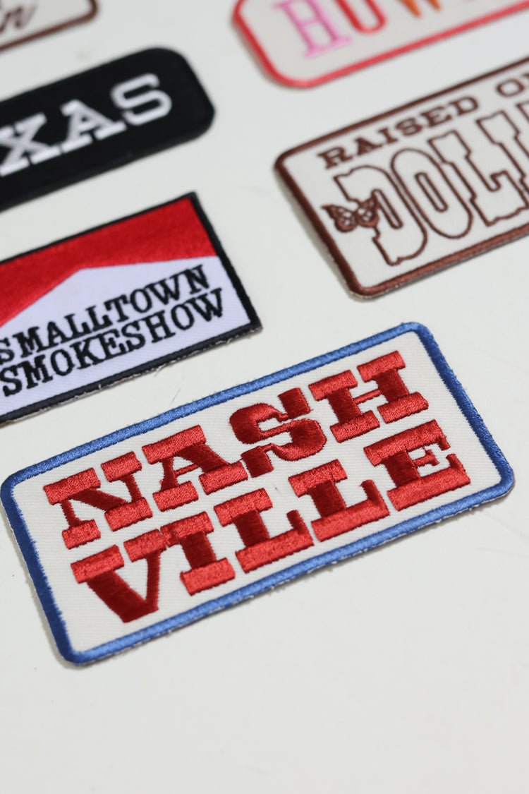 Exclusively ours and designed in our Dallas studio, this bold rectangular patch pays tribute to Music City in standout style. Featuring a crisp white background with vivid red block lettering framed in a striking blue border, it’s a nod to Nashville’s iconic Americana spirit. Perfect for country music fans, travelers and anyone with roots in Tennessee, this patch makes it easy to personalize a denim jacket, tote or favorite hat. Simple to apply, this iron-on patch is built to last, making it a timeless keepsake that shows off your Nashville pride wherever you go.
