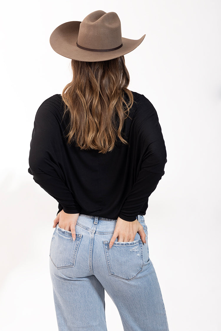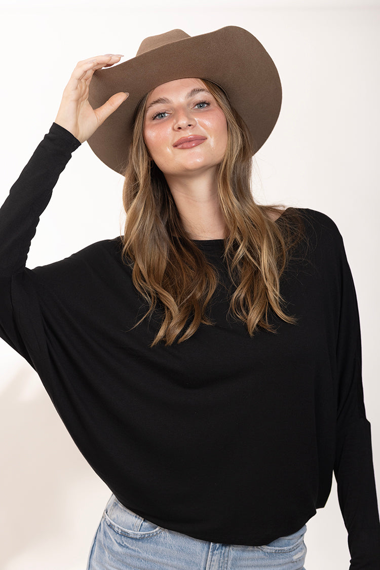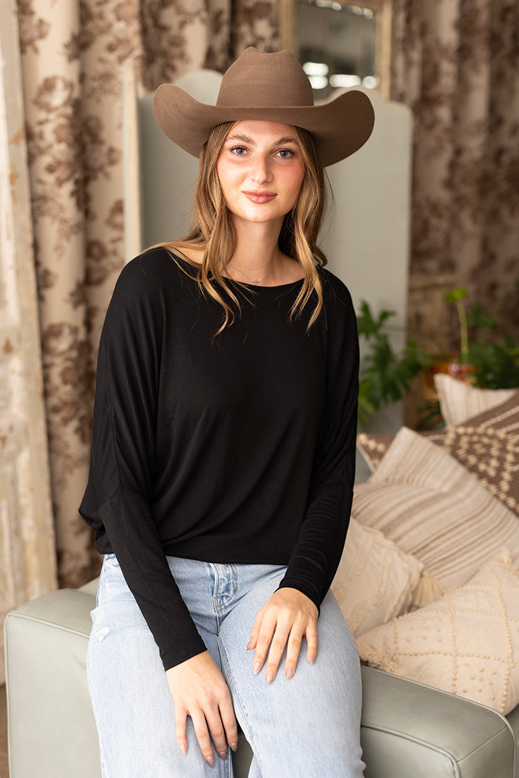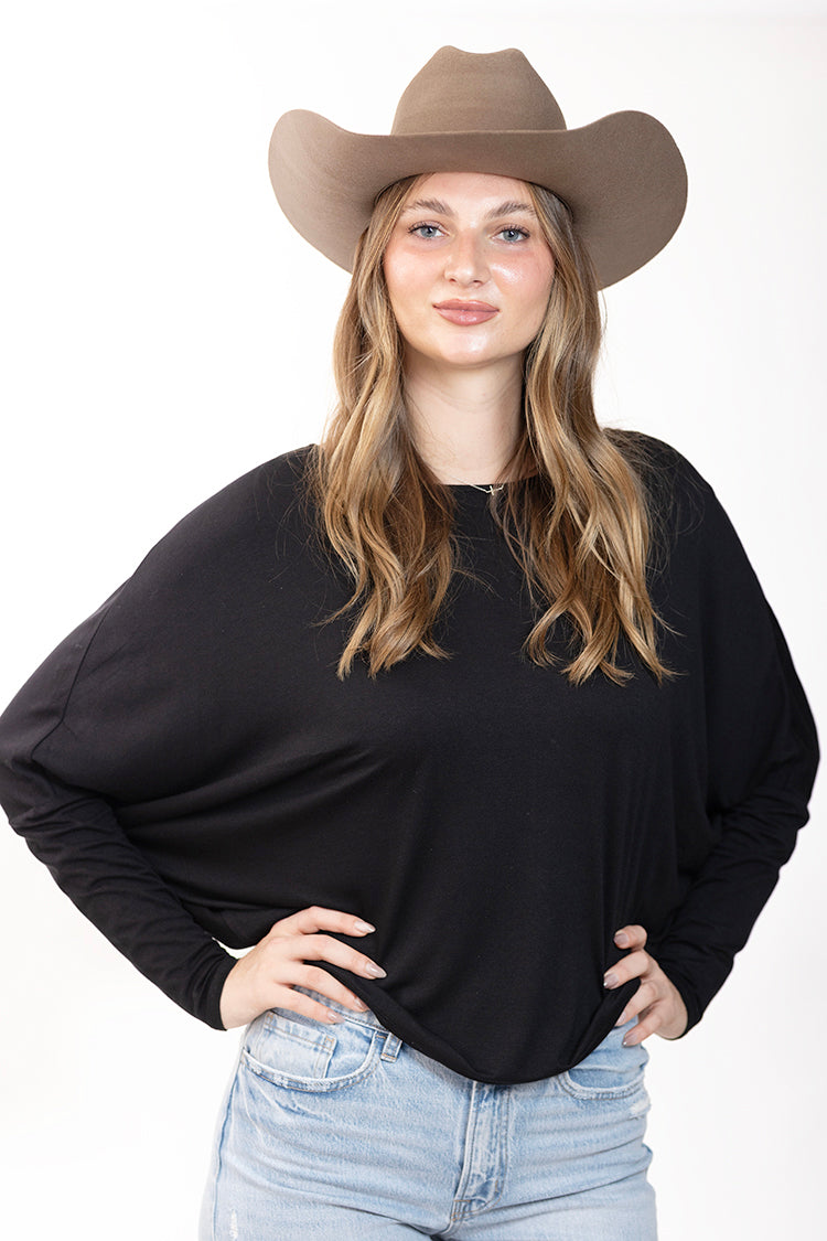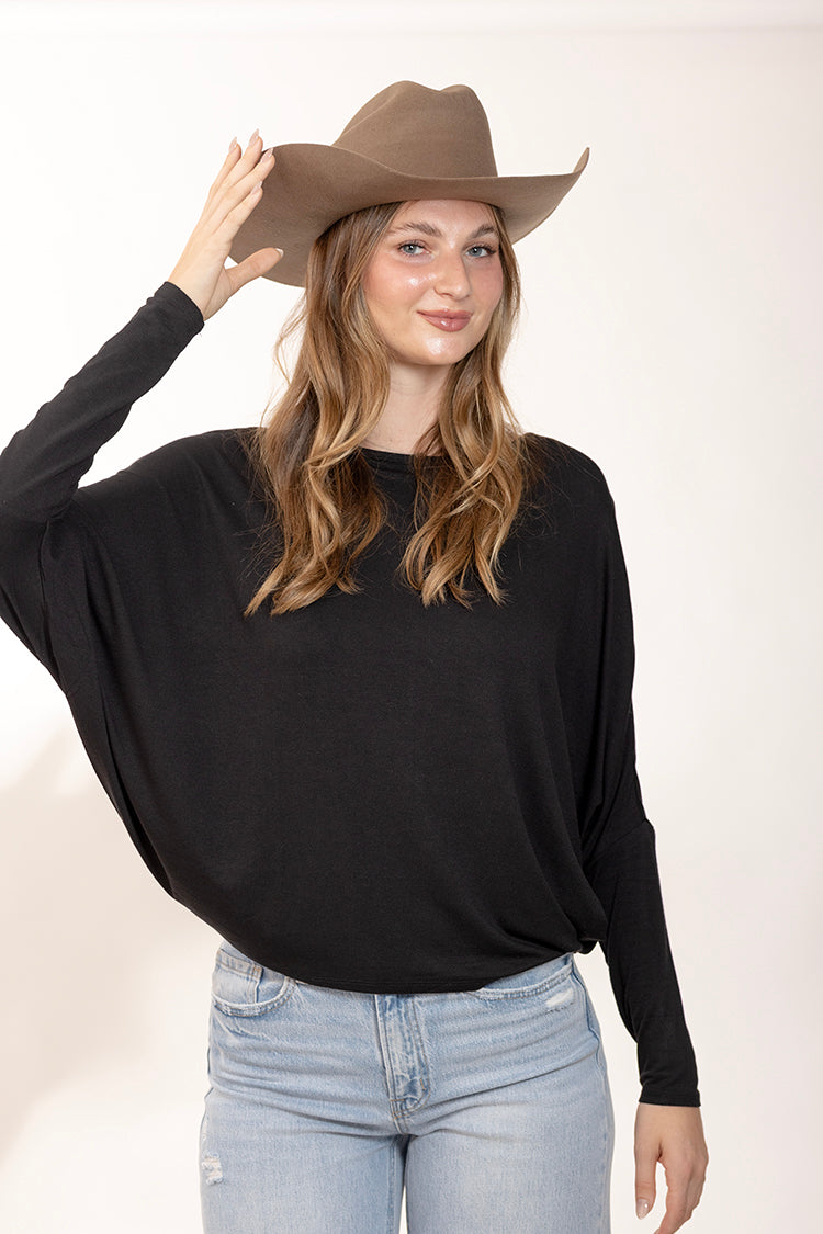 Effortless and easy, this relaxed-fit essential pairs soft drape with modern simplicity. The wide neckline and dolman sleeves create a flattering silhouette that’s equal parts casual and chic. Style it with denim or trousers for a laid-back look that transitions from day to night with ease.