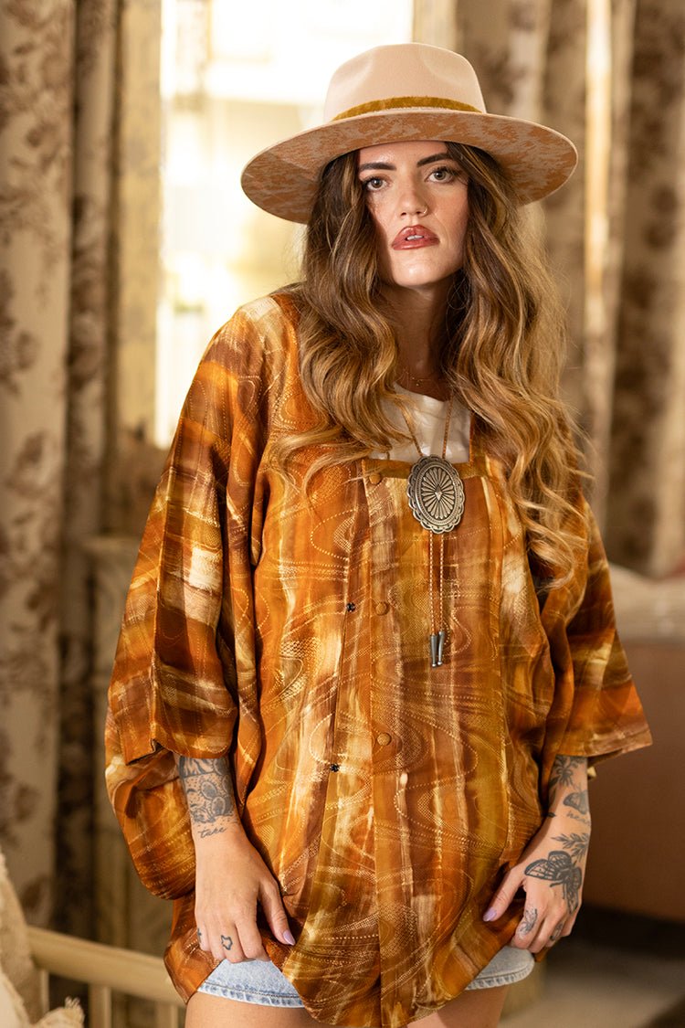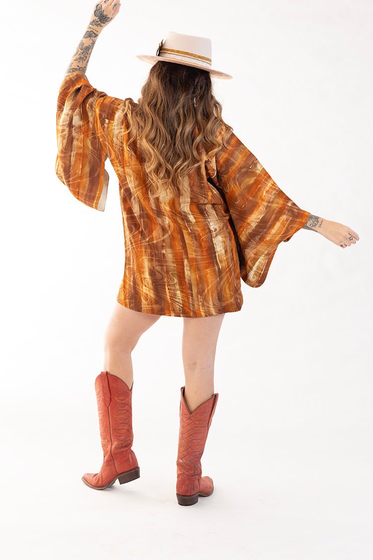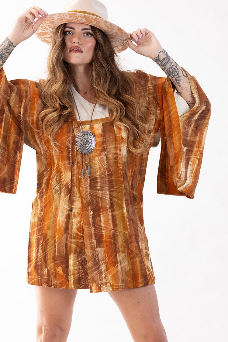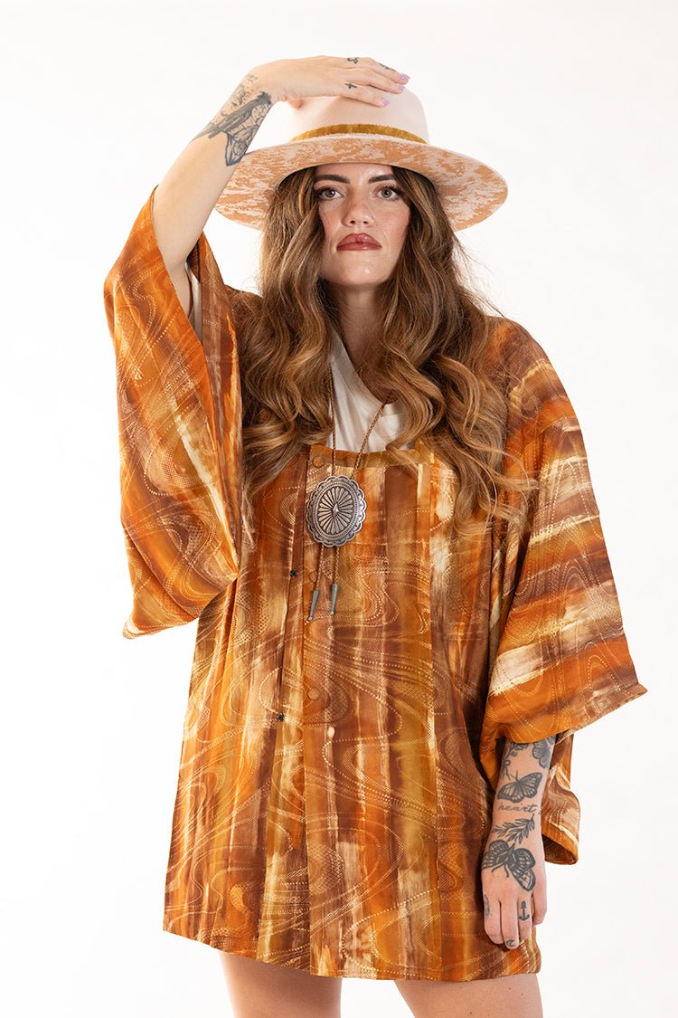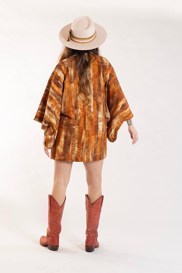 We sourced this vintage Michiyuki jacket in California, and it’s a true treasure. Known for its square collar, flattering three-quarter length and kimono-style sleeves, this traditional Japanese piece is versatile enough to wear buttoned up as a dress or open over a tee and jeans as a one-of-a-kind layer. Exclusive to Flea Style and available online only, it brings timeless craftsmanship and unique style to your wardrobe.