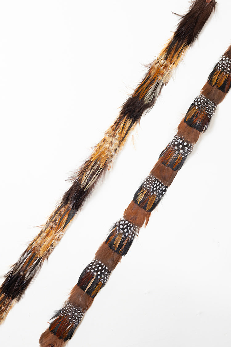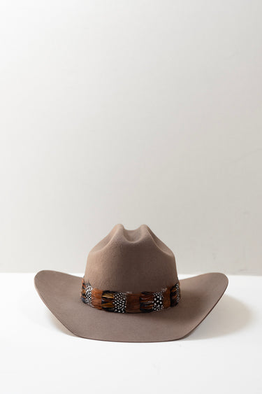 Give your hat a fresh dose of Western personality with this feather hat band featuring a mix of black, brown and speckled feathers. The adjustable leather tie makes it easy to secure on a variety of hat styles, creating a custom fit every time. Whether you're dressing up your everyday wide brim or styling a look for the rodeo, this standout accessory adds effortless flair and a little wild spirit to any hat.
