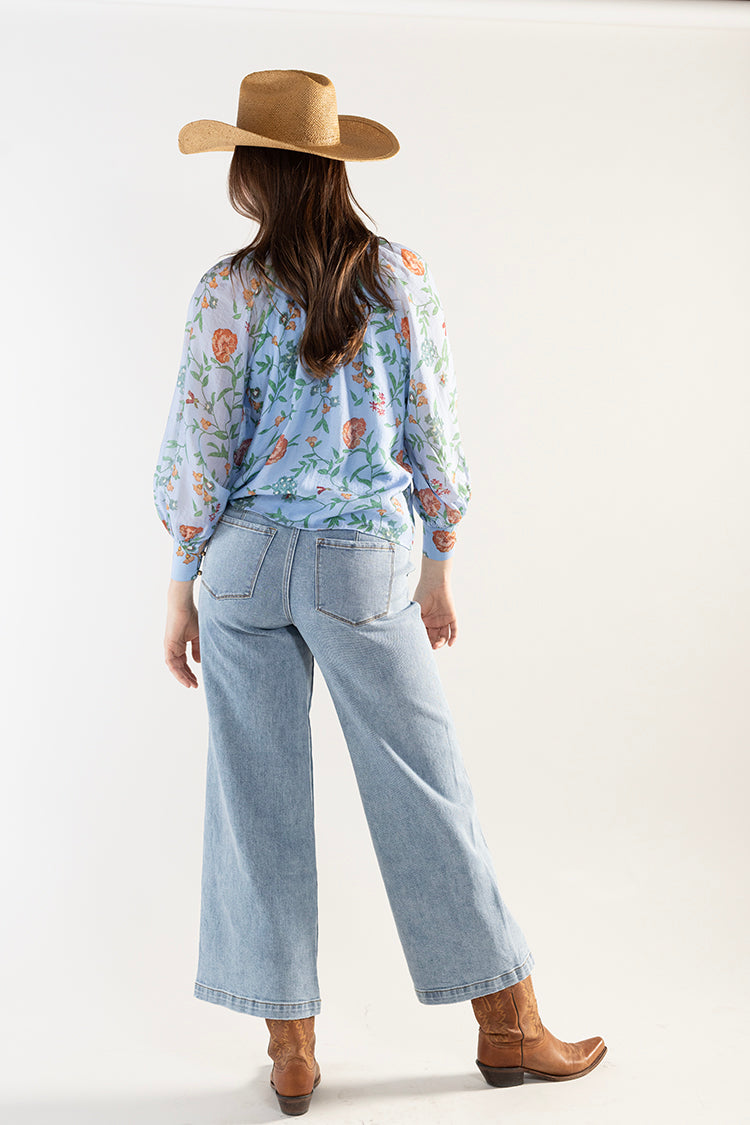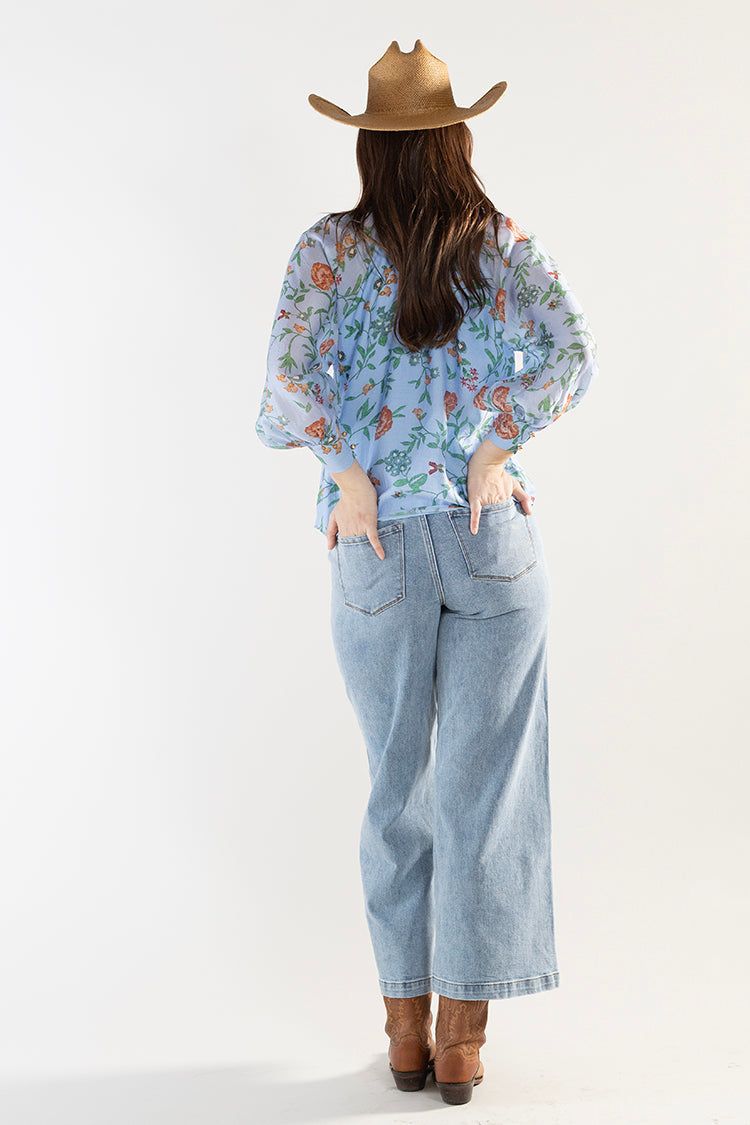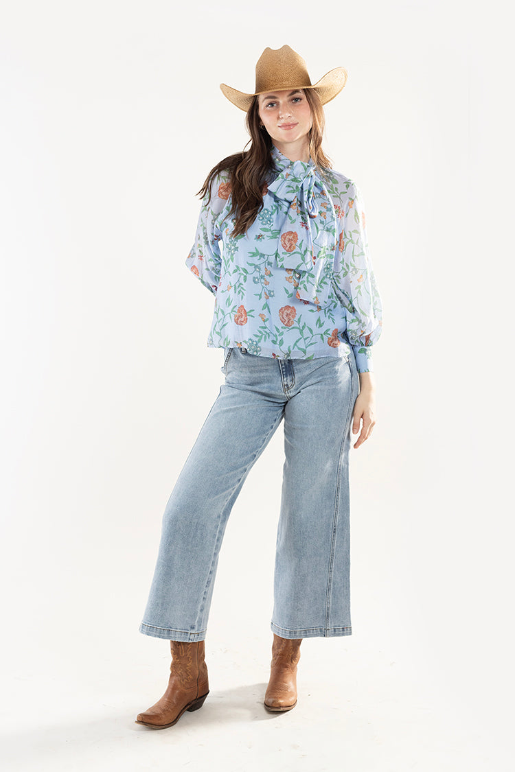 Soft, romantic, and effortlessly polished, this lightweight blouse brings a sophisticated touch to everyday styling. The delicate floral print, airy long sleeves, and a dramatic bow tie neckline blend beautifully feminine with high-function. The lined design offers comfortable coverage while maintaining the blouse’s light, flowy feel. It’s the kind of piece that turns a simple outfit into something quietly memorable.