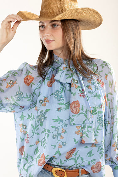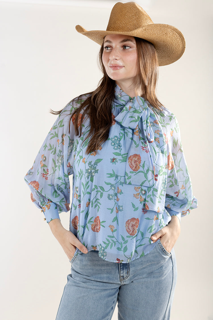 Floral Long Sleeve Blouse with Neck Tie